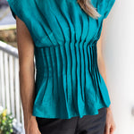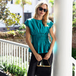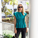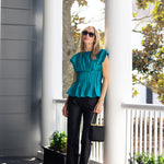 Meet the Ava Top, an elegant and modern peplum pintuck top in Dupioni silk inspired by the arresting style of 40's film star Ava Gardner. The top features an ultra-flattering corseted waist, cap sleeve, and keyhole neck closure in the back. Hitting below the waist, she pairs perfectly with the Julia Pants for an evening ensemble or denim for a cooler, night-out-in-the-city look.