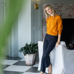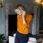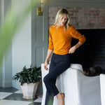 Meet the Bacall Sweater, our long sleeve knit that's dressier than a long-sleeve t-shirt but without the bulk of a heavier sweater. She's comfortably soft and fitted enough to dress up and tuck into high-waisted styles. Hits at the hip.