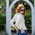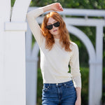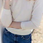 Meet the Bacall Sweater, our long sleeve knit that's dressier than a long-sleeve t-shirt but without the bulk of a heavier sweater. She's comfortably soft and fitted enough to dress up and tuck into high-waisted styles. Hits at the hip.
