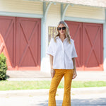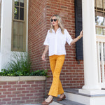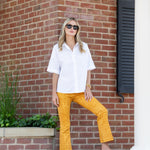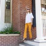 The bestselling printed Bell Pant, our effortlessly chic basic pant, now in printed Twill (she has the same hint of stretch but a little more give than the original canvas fabrication). The cropped pants feature a supremely flattering subtle kick-flare. Slightly tidier than denim, the Bell Pants do not have pockets or belt loops to make them a sleeker silhouette and your ultimate summer daytime outfit canvas.