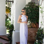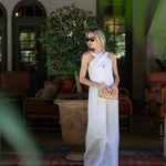 Meet the Camille Dress, an elegant and extremely flattering event dress for the season's soirees. Perfectly minimalist in design, she's both elegant and a little bit sexy. Made of our favorite silk dupioni fabric, the Camille features a crossed halter-neck with a full back to make it bra friendly, paneled front and a front slit. Zip closure in back.