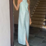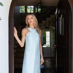 Meet the Camille Dress, an elegant and extremely flattering event dress for the season's soirees. Perfectly minimalist in design, she's both elegant and a little bit sexy. Made of our favorite silk dupioni fabric, the Camille features a crossed halter-neck with a full back to make it bra friendly, paneled front and a front slit. Zip closure in back.