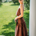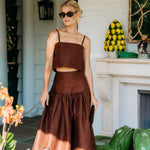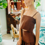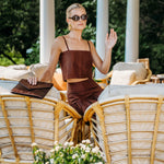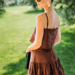 Meet the Circle Top - now in silk Dupioni - a boxy, cropped, spaghetti strap top that compliments the matching Circle Skirt perfectly (but we also love with high-waisted jean). Paired with the Circle Skirt she's designed to drape loosely but be cropped enough to show off your waist. Features button closure down the back of the top.