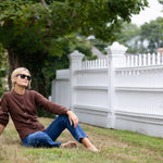 A 100% cotton knit yarn with a jersey stitch is an ultra-soft, comfortable fabric we use for casual knit styles like the Falmouth Sweater and Jogger.