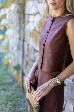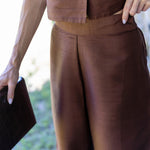 Introducing our newest palazzo pant: the Ivy Pant. The Ivy Pant, now in Dupioni Silk, are flat-front pant with a wide leg and a flattering A-Line silhouette. The Ivy feature a a side zipper and an elastic waist on the back for maximum comfort and functionality while still looking chic and pulled together (think business in the front, party in the back).
