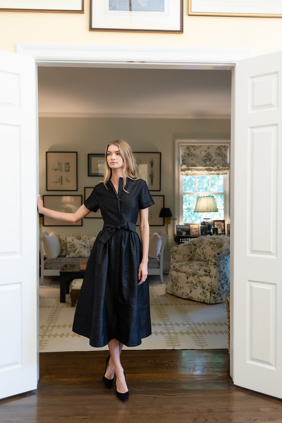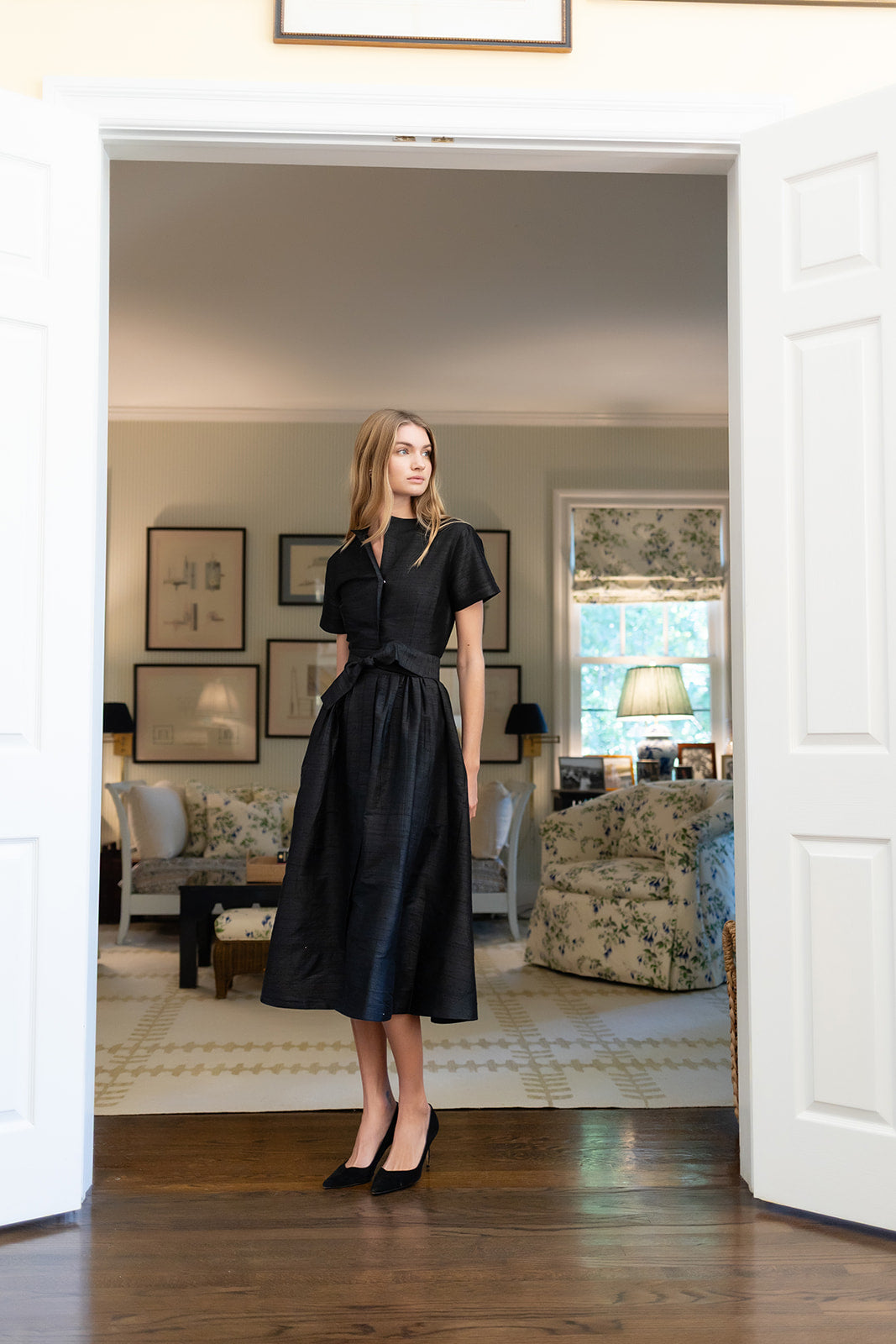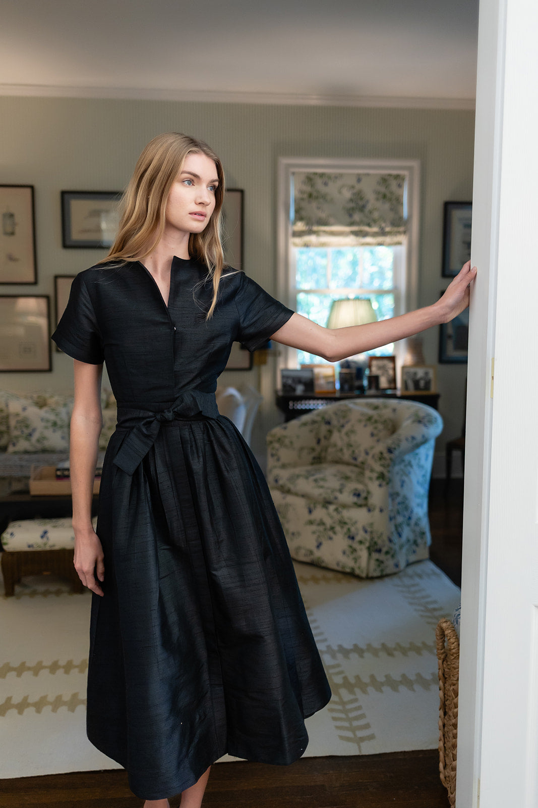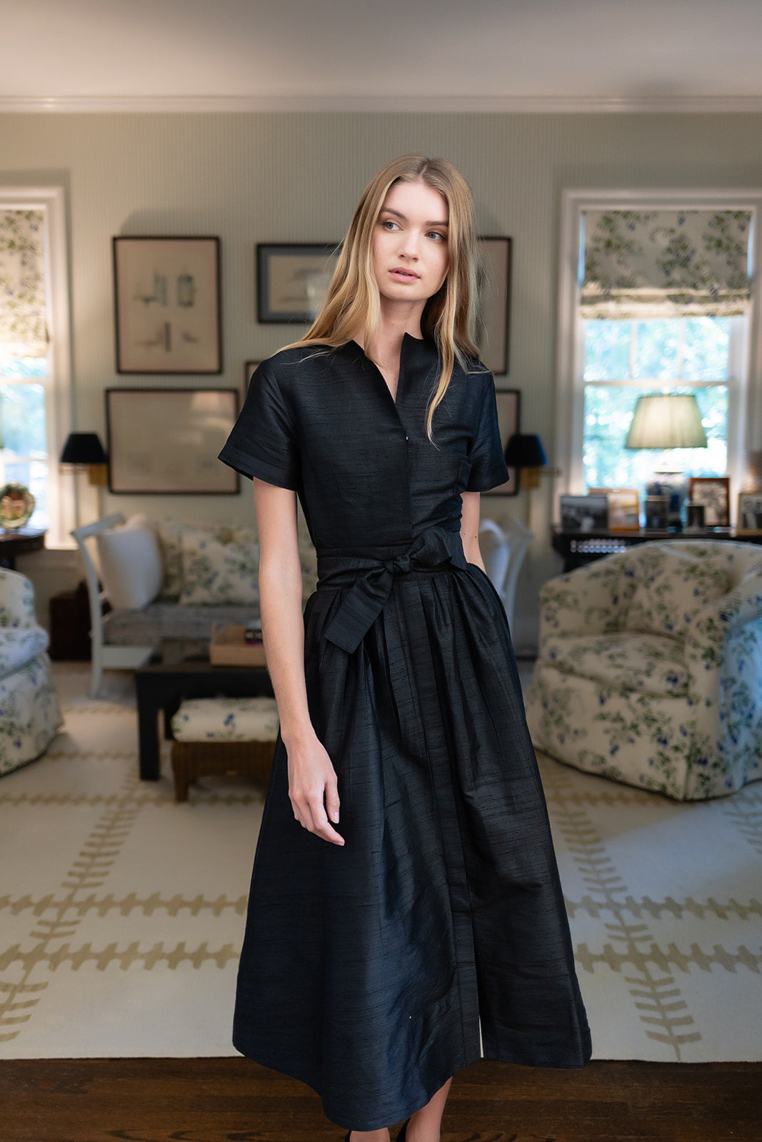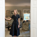 Meet the Kate Dress, our favorite vintage-inspired shirt dress now in Dupioni silk. Featuring a universally-flattering minimalist silhouette with short sleeves, collarless neckline, cinched waist and A-line tea length. The Kate Dress has concealed pockets and a detachable tie belt.