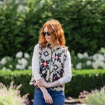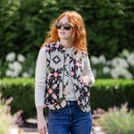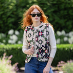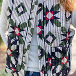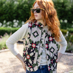 Meet the Montauk Vest, our new quilted vest for fall. The perfect styling piece for the in-between seasons, we love layering over a sweater or Carolyn. The Montauk Vest is made of quilted cotton with a mandarin collar, coordinating piping detail, button closures, and flat front pockets. Hits at hip.