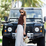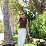Both linen and linen blends are strong but lightweight and breathable woven fabrics perfect warm weather. The natural texture and weight of the fabric give linen a beautiful flowy quality. Find us in linen all summer long!