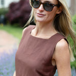 Both linen and linen blends are strong but lightweight and breathable woven fabrics perfect warm weather. The natural texture and weight of the fabric give linen a beautiful flowy quality. Find us in linen all summer long!