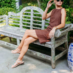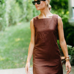 Introducing the Serena Dress, a 60's mini shift in linen. With a flattering square neckline and hidden pockets, she's the perfect dress for a day's worth of summer activities. She pairs perfectly with a head scarf and a summer tan. Fully lined with button closure at back of neck. Made of 70% linen, 30% viscose fabric.