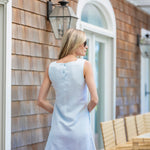 Introducing the Serena Dress, a 60's mini shift in linen. With a flattering square neckline and hidden pockets, she's the perfect dress for a day's worth of summer activities. She pairs perfectly with a head scarf and a summer tan. Fully lined with button closure at back of neck. Made of 70% linen, 30% viscose fabric.