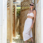 update! we've made our pareos 6" longer (now 76" x 44") to accommodate more body types when tying in the wrap-around column style we love.