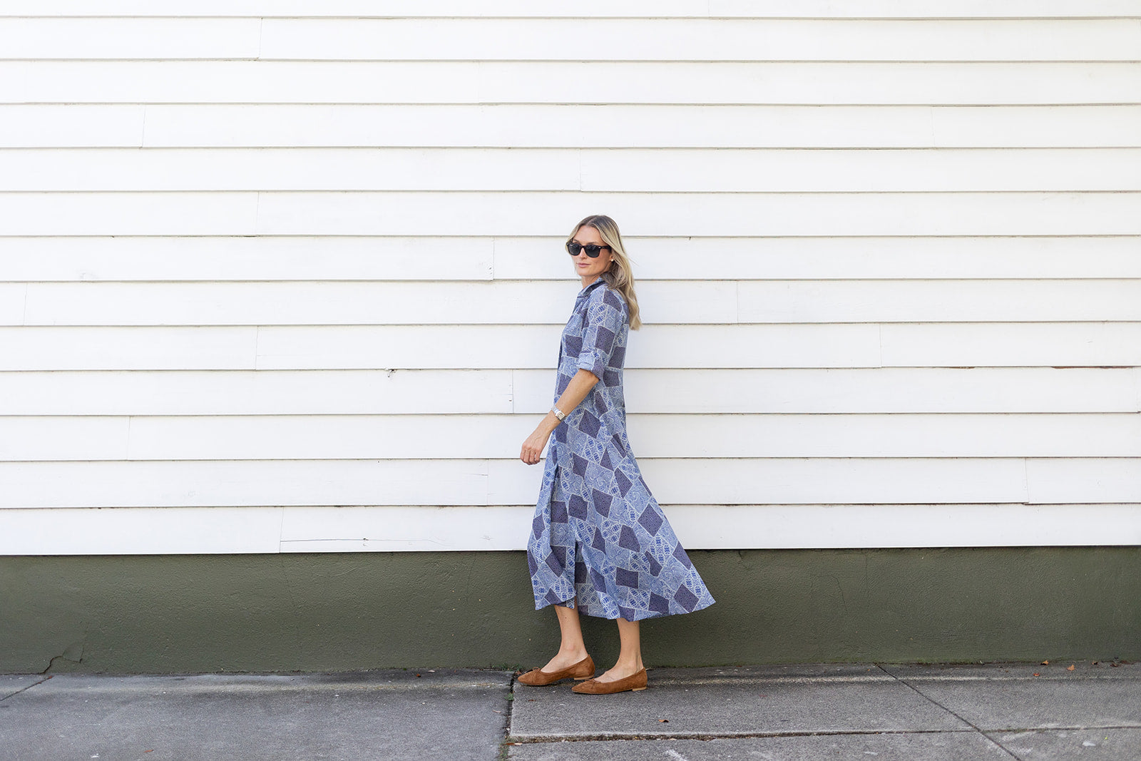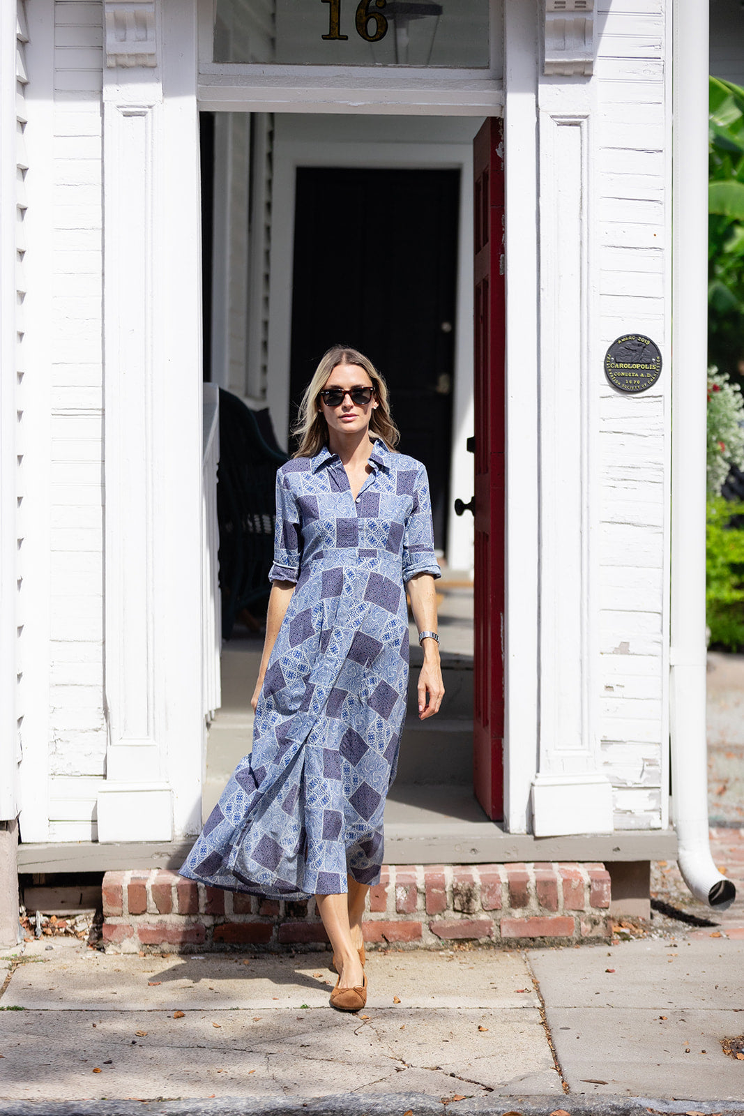 Our first ever style and a tried and true staple for the entire year, the classic JA Shirt Dress is now updated without the lining. This dress's ultra-flattering silhouette with an empire waist and slight A-line has made it a timeless closet hero. Dress features concealed button front, figure flattering empire waist with a subtle A-line cut ankle length skirt, and concealed pockets. Made of 100% cotton.