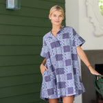 Meet the Twiggy Dress, a happy and chic swing dress inspired by Twiggy's iconic '60s style. A mod take on a shirt dress, the Twiggy has a cuffed short sleeve and hem with a mock color, button down front, pockets and a slightly shorter length in the front than back.