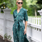 The new Cordelia Coatue Dress is equal parts cute and effortless, featuring rich embroidered floral detail and dot piping, she's perfect for an elevated day out or dressed up for a casual evening. A flowy, slightly A-line silhouette with a coordinating tie belt. Sleeves do not feature an elastic banded arm. Unlined but not sheer. 100% Cotton Cambric.