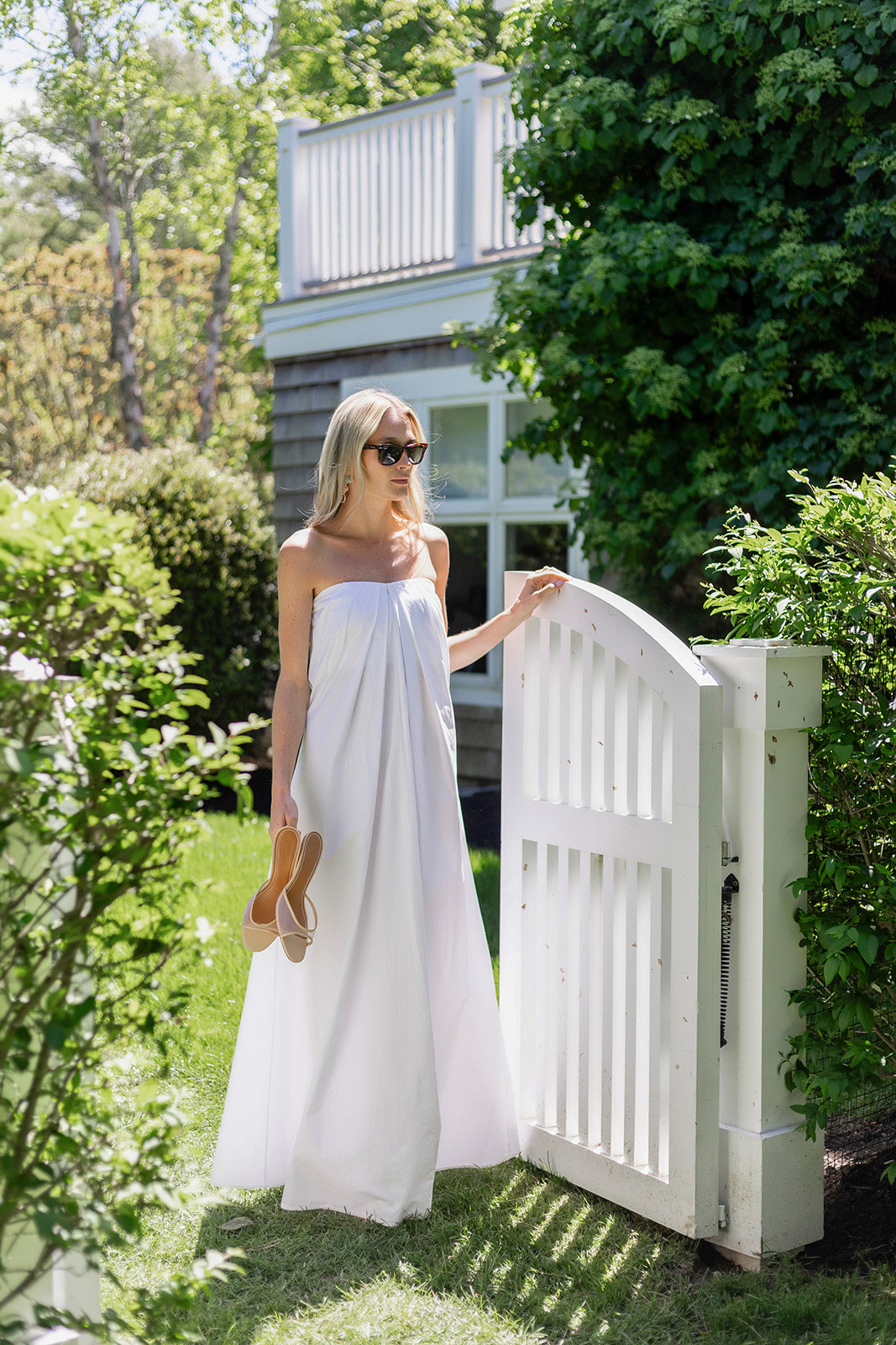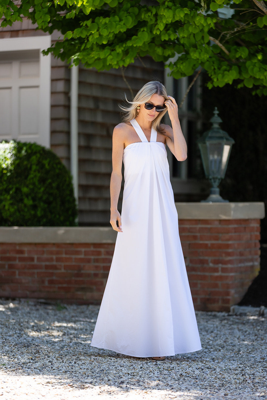 Meet the Elle Dress, a maxi dress with a gathered bodice and removeable straps to style it two ways. Made of crisp cotton poplin and a flowy silhouette, she evokes summer goddess. Features an internal corseted bust and zipper closure. Straps removeable via hidden buttons with length options.