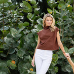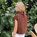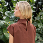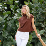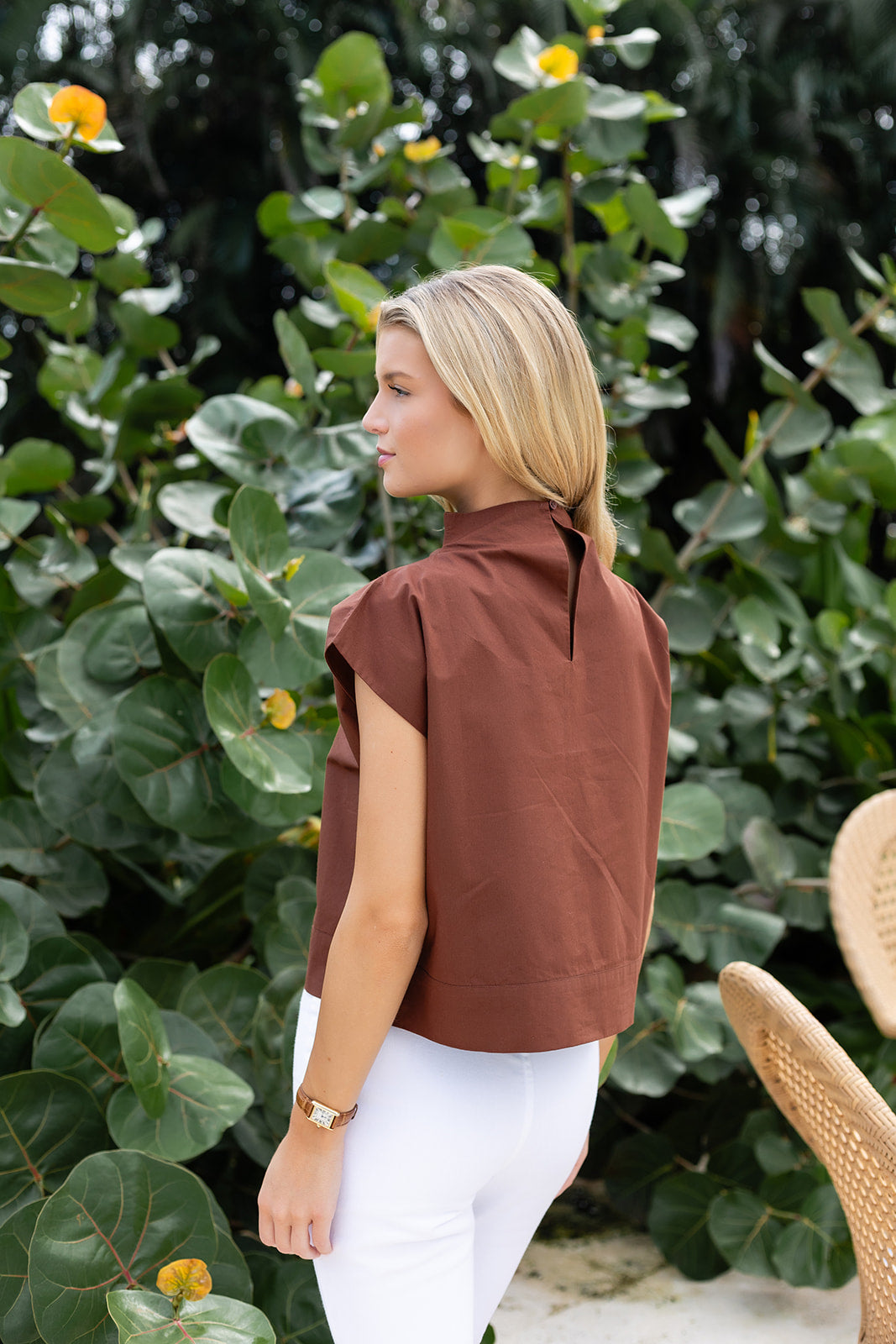 Meet the Tramell Top, a perfectly crisp poplin top for spring dressing. The Tramell's elegant funnel neck, cap sleeve, and clean poplin fabric make her an incredibly versatile piece in your closet - pair with a Bell to elevate a daytime outfit or with dupioni pants and heels for a chic evening ensemble.
