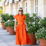 Transport yourself to 1950s Palm Beach in the perfectly vintage-inspired Betty Dress, now in Dupioni Silk. The Betty is universally flattering silhouette (think Sisterhood of the Traveling Dress) with cap sleeves, a neck-elongating collar, cinched tie waist, and an A-line tea length.