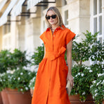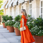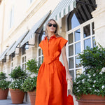 The Betty ships with two dupioni belt options - one in matching Copper and one in contrasting Noir. Please note the Copper belt ships inside the dress & can be found behind the tag.