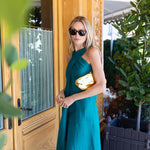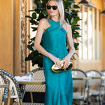 Meet the Camille Dress, an elegant and extremely flattering event dress for the season's soirees. Perfectly minimalist in design, she's both elegant and a little bit sexy. Made of our favorite silk dupioni fabric, the Camille features a crossed halter-neck with a full back to make it bra friendly, paneled front and a front slit. Zip closure in back.