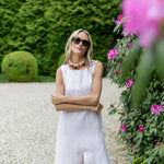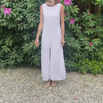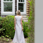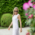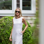 Introducing the Isabella Dress, our new linen maxi with mod touches. With an elegant square neckline, hidden pockets, and a flattering front slit, she's the perfect dress to bring you from day to night (she would look great on a boat). Fully lined with button closure at back of neck. Made of 70% linen, 30% viscose fabric.
