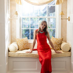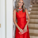 Meet Jane - an elegant take on the perfect 1960s silhouette with a touch of 90s modernism. Easy, timeless and the perfect dress to showcase your most treasured accessories, she is a must for every wardrobe. Made of 100% silk dupioni, this dress features a slight a-line cut, hits mid-ankle & has a zipper closure in the back.