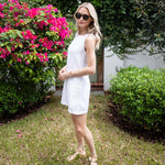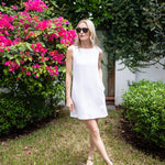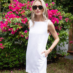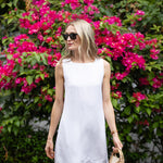 Introducing the Serena Dress, a 60's mini shift in linen. With a flattering square neckline and hidden pockets, she's the perfect dress for a day's worth of summer activities. She pairs perfectly with a head scarf and a summer tan. Fully lined with button closure at back of neck. Made of 70% linen, 30% viscose fabric.
