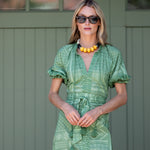 A printed version of our bestselling Short Sleeve Coatue Caftan with a slightly lighter and more flowy fabrication, the Zoe is equal parts cute & effortless. Featuring rich embroidered floral detail and dot piping, she's perfect for an elevated day out or dressed up for a casual evening out.