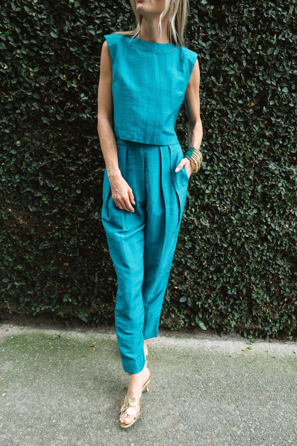 Introducing the Deco Pant, an ultra-feminine take on the classic men's trouser silhouette. With a high rise that cinches the waist, pleated front with straight, and a slightly cropped leg, she's the ultra-chic pant you need to make a statement at all the season's festivities. We love them paired with a Slim Top, Blair Top, Carolyn, or Tippi Top in a coordinating color (or contrasting for a on-trend color-blocking moment).