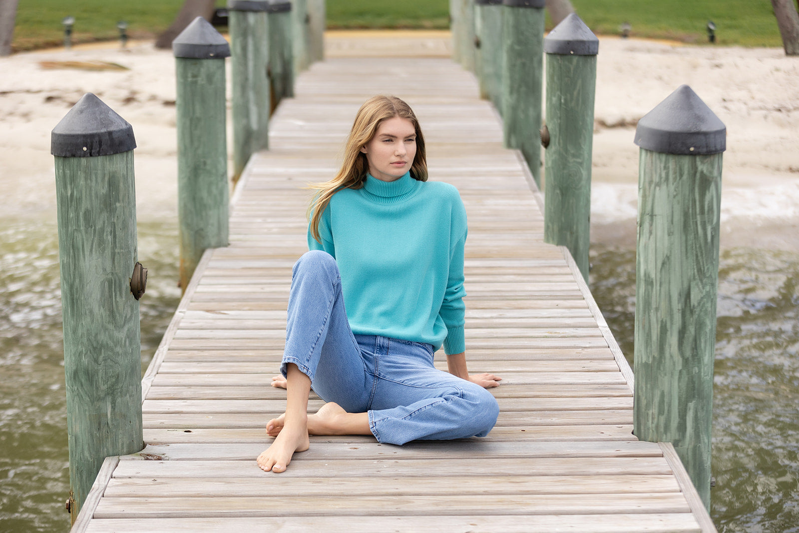 Meet the Falmouth Turtleneck, a refined essential designed to elevate your everyday uniform. With nods to classic Americana and an effortlessly chic sensibility, she’s the piece you’ll reach for when you want comfort with a polished finish. Made of 100% cotton and featuring a relaxed fit, soft ribbed cuffs, hem, and a cozy turtleneck neckline, she layers beautifully or stands on her own. We love her styled with the matching Falmouth Wide Leg Pants, Bell Pants, or your favorite lived-in denim for an easy, timeless look.