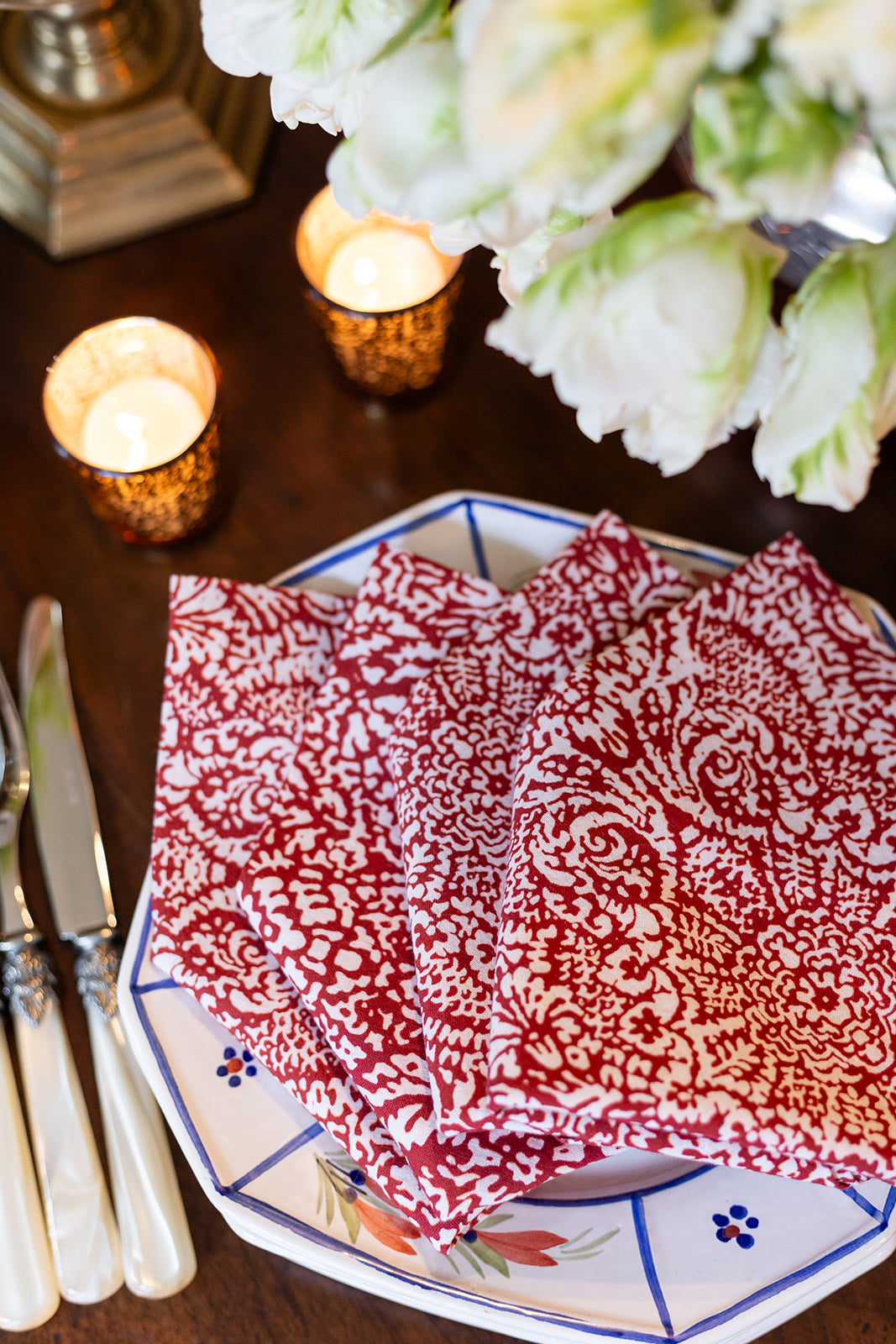 100% cotton hand block printed dinner napkins, 22" x 22"