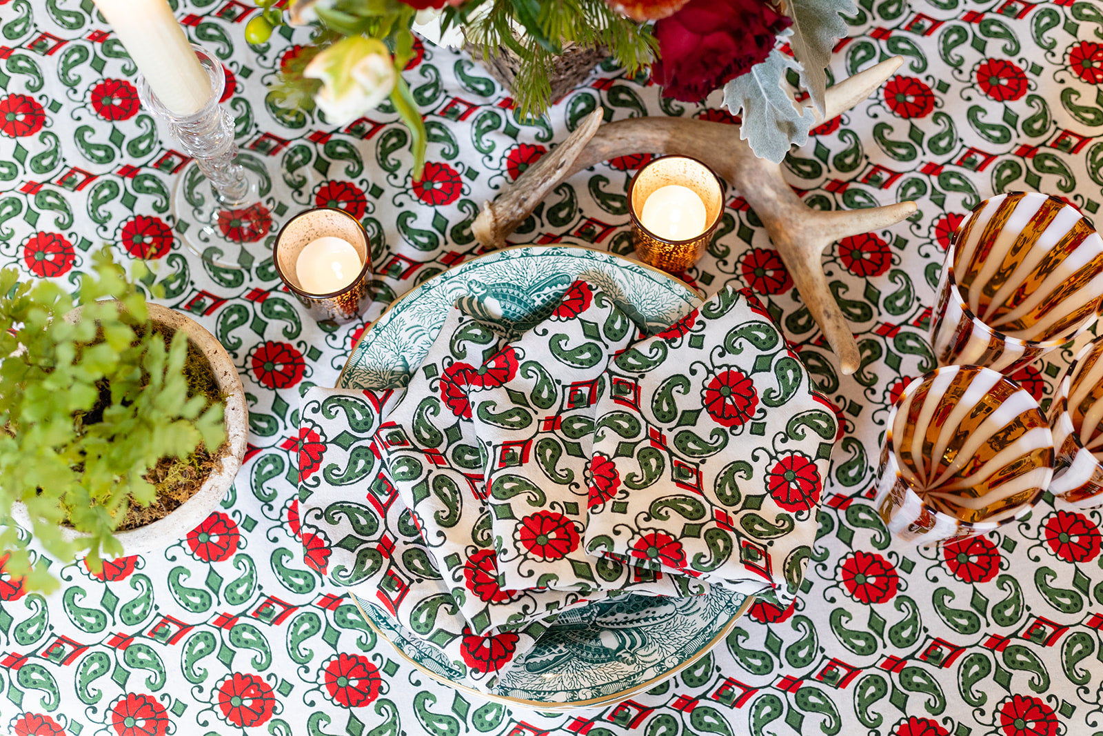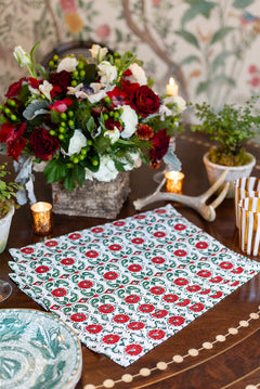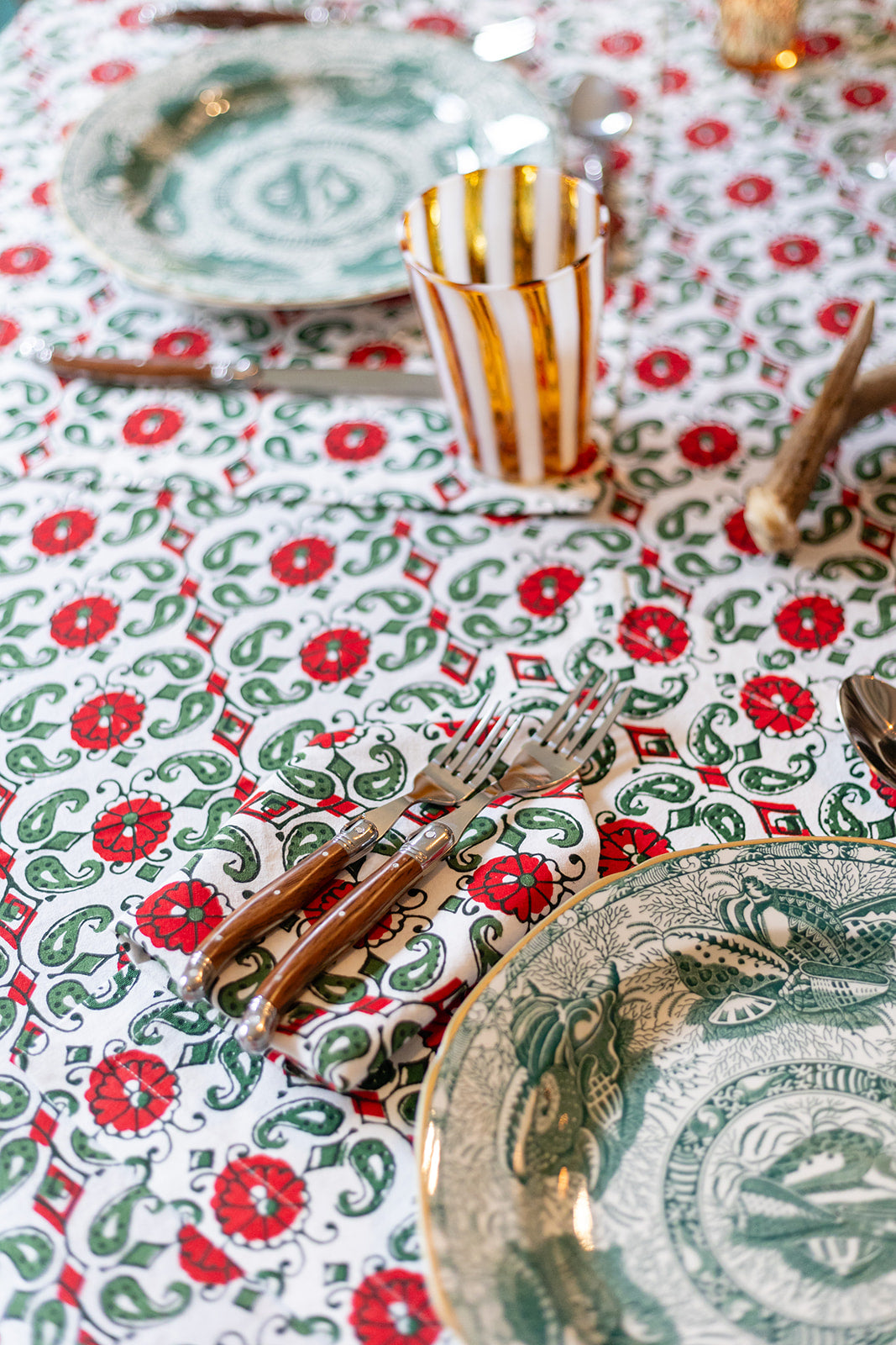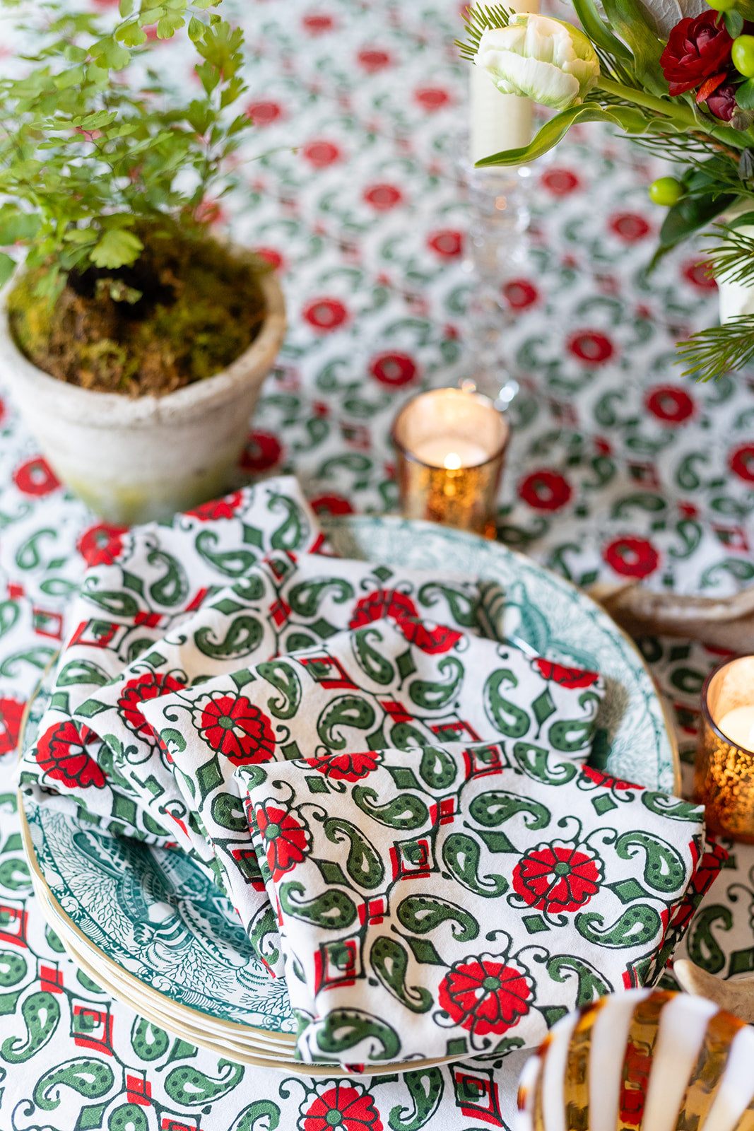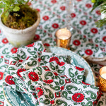 100% cotton hand block printed dinner napkins, 22" x 22"
