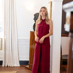 Meet the Camille Dress, an elegant and ultra-flattering event dress for the season's soirees. Perfectly minimalist in design, she's both elegant and a little bit sexy. Made of our favorite silk dupioni fabric, the Camille features a crossed halter-neck with a full back to make it bra friendly, paneled front and a front slit. Zip closure in back.