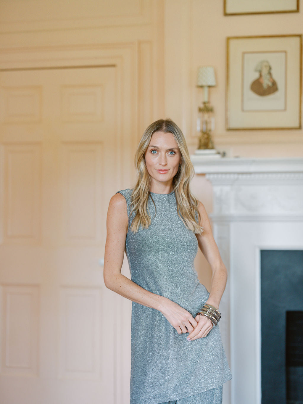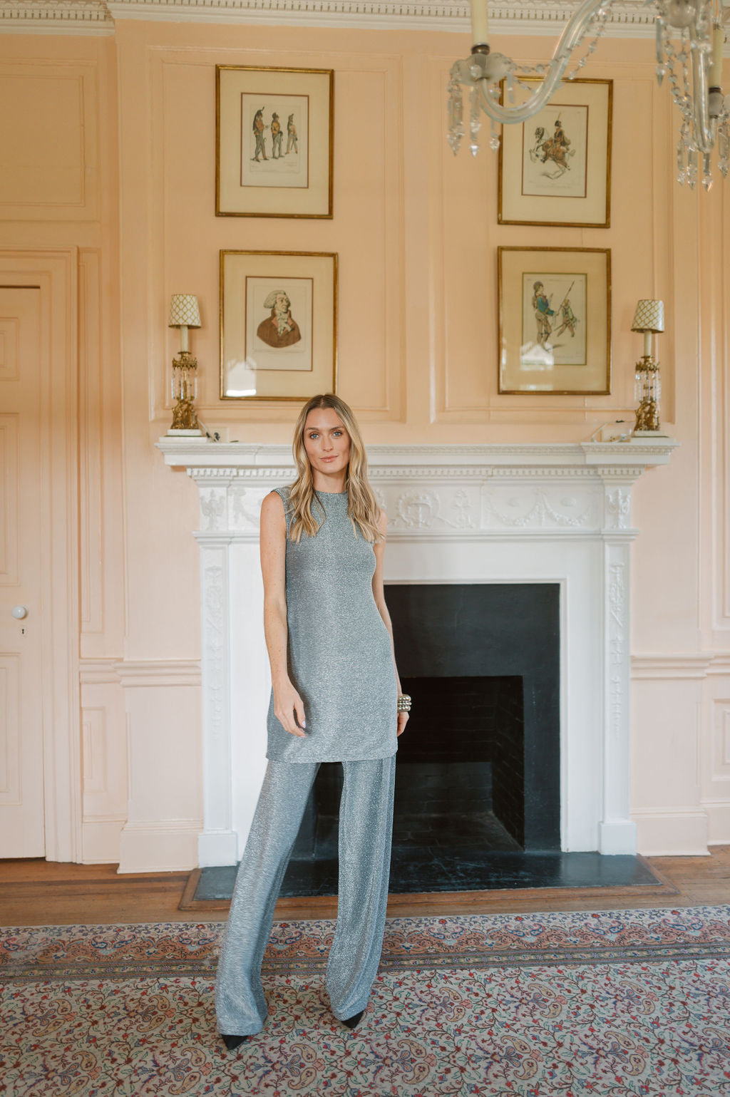 Sleeveless Metallic Tunic Top - Silver