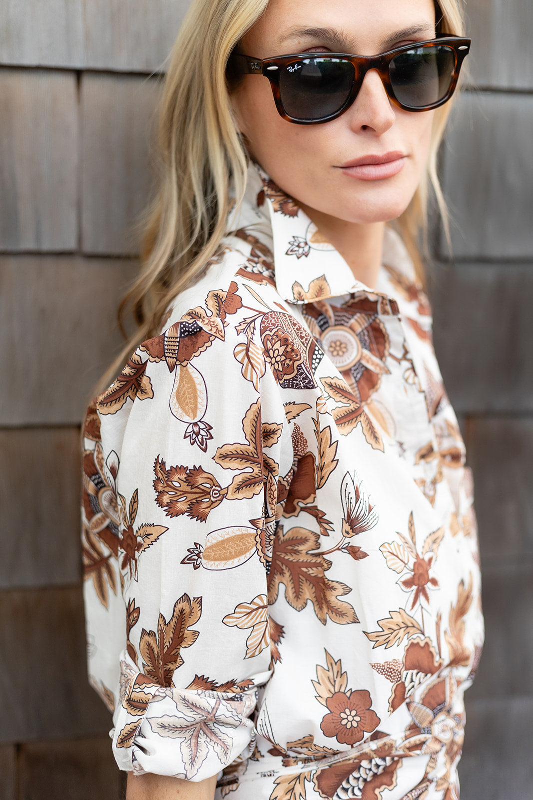 Borrowed from the boys, the JA Husband Shirt is inspired by men's oxfords & pajamas updated with feminine touches. Inspired by our mother's forever beach look (dad's shirt, pareo, sun hat), the Husband Shirt can be worn as a beach coverup for warm weather or as a shirt with jeans or Bell Pants.
