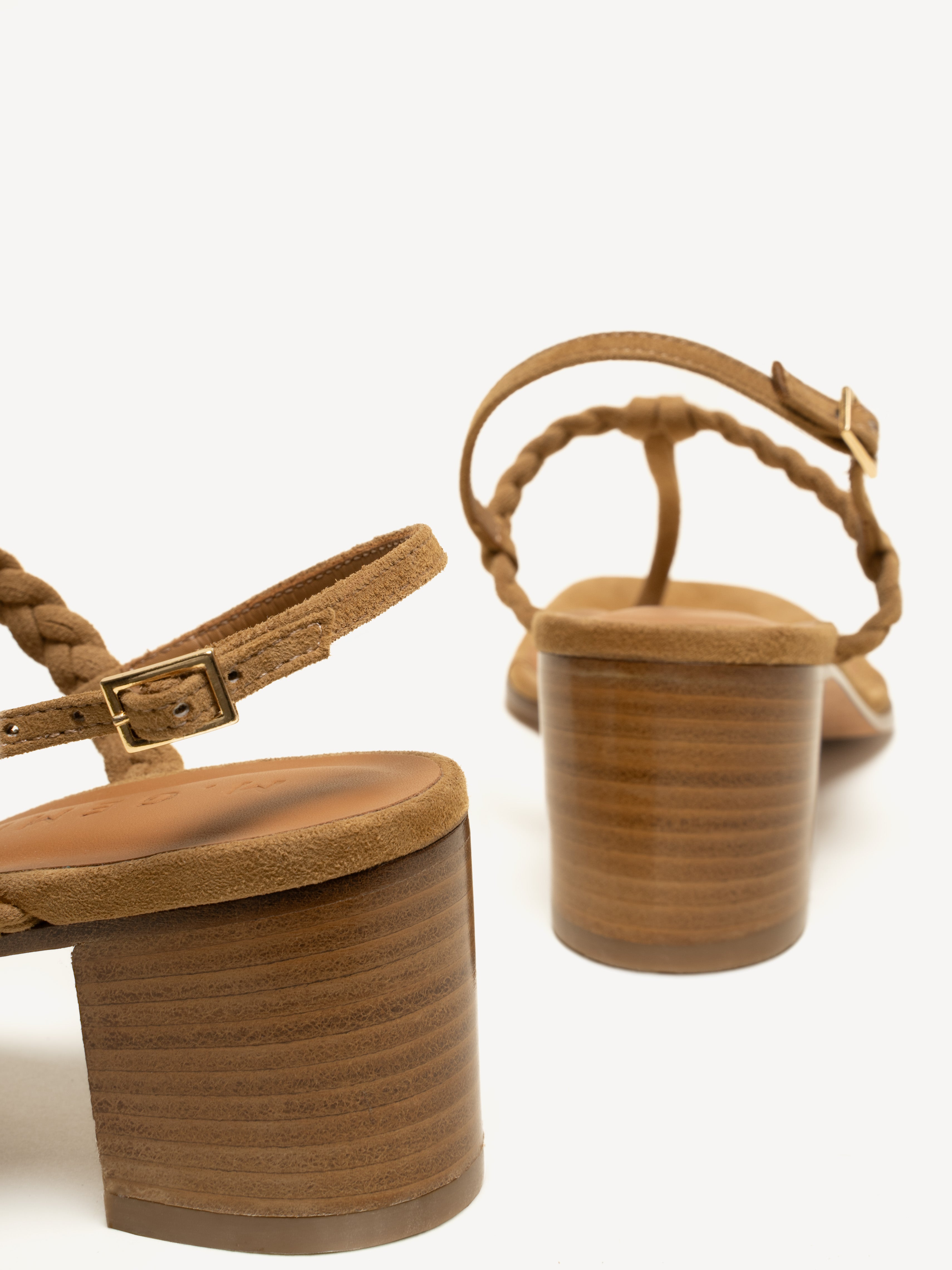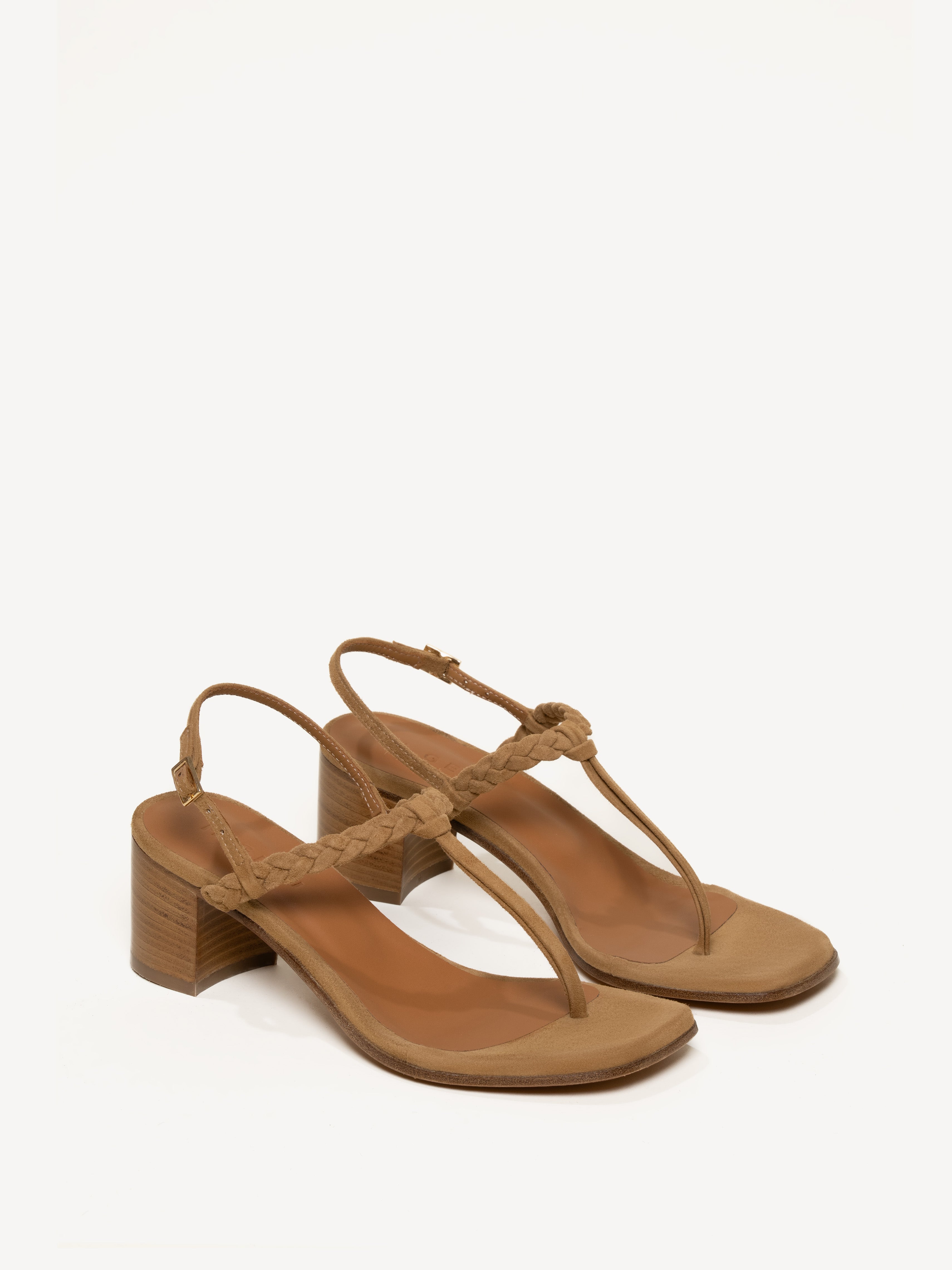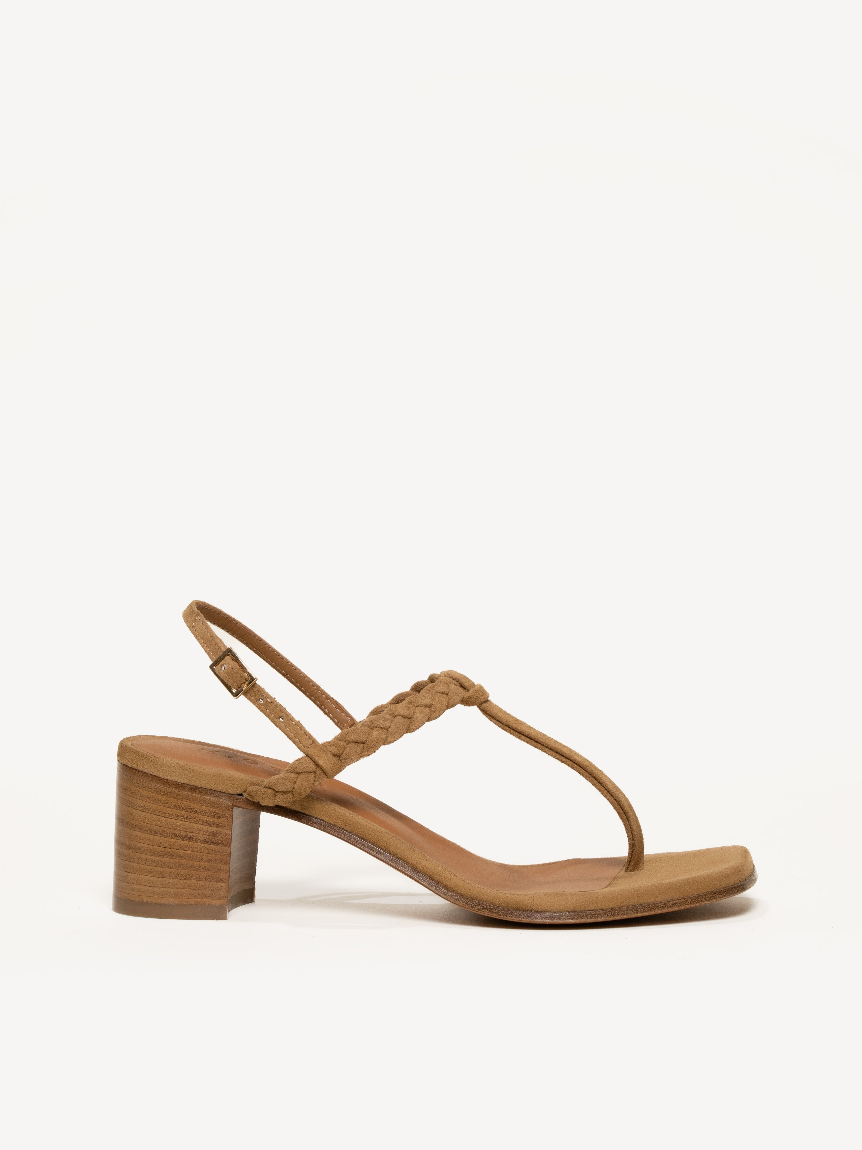 JA x M. Gemi Treccina Block Heel Sandal - Saddle