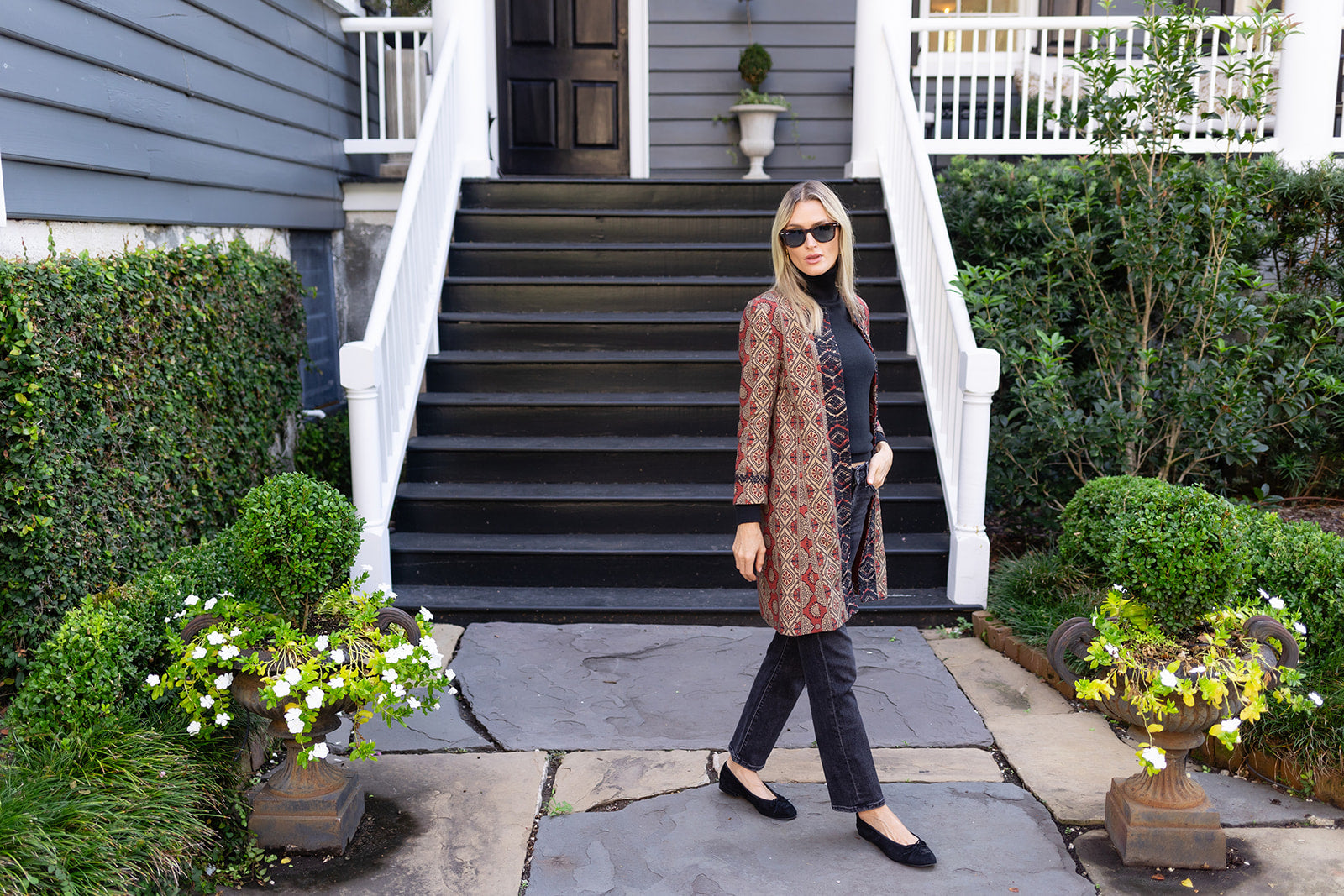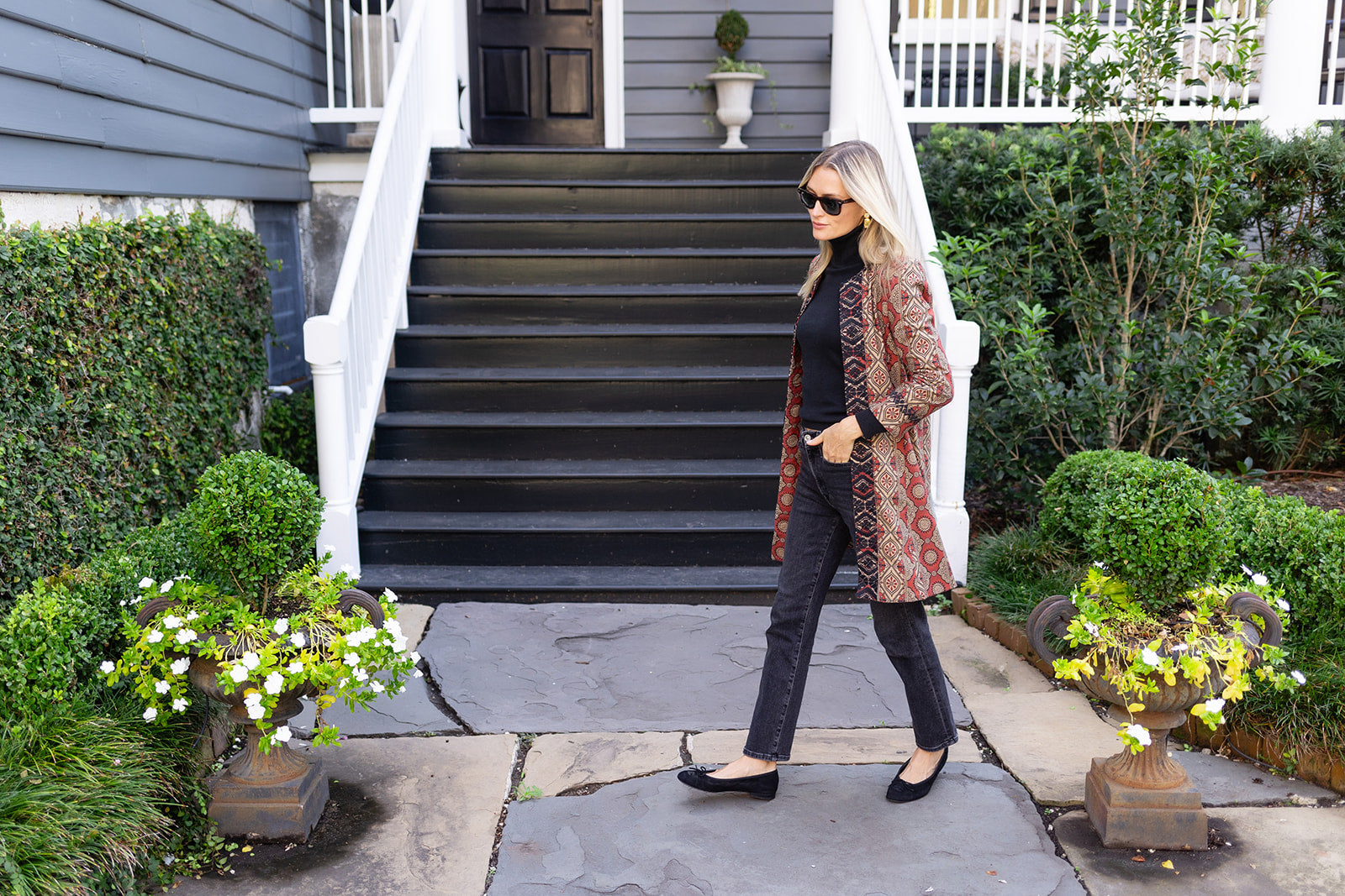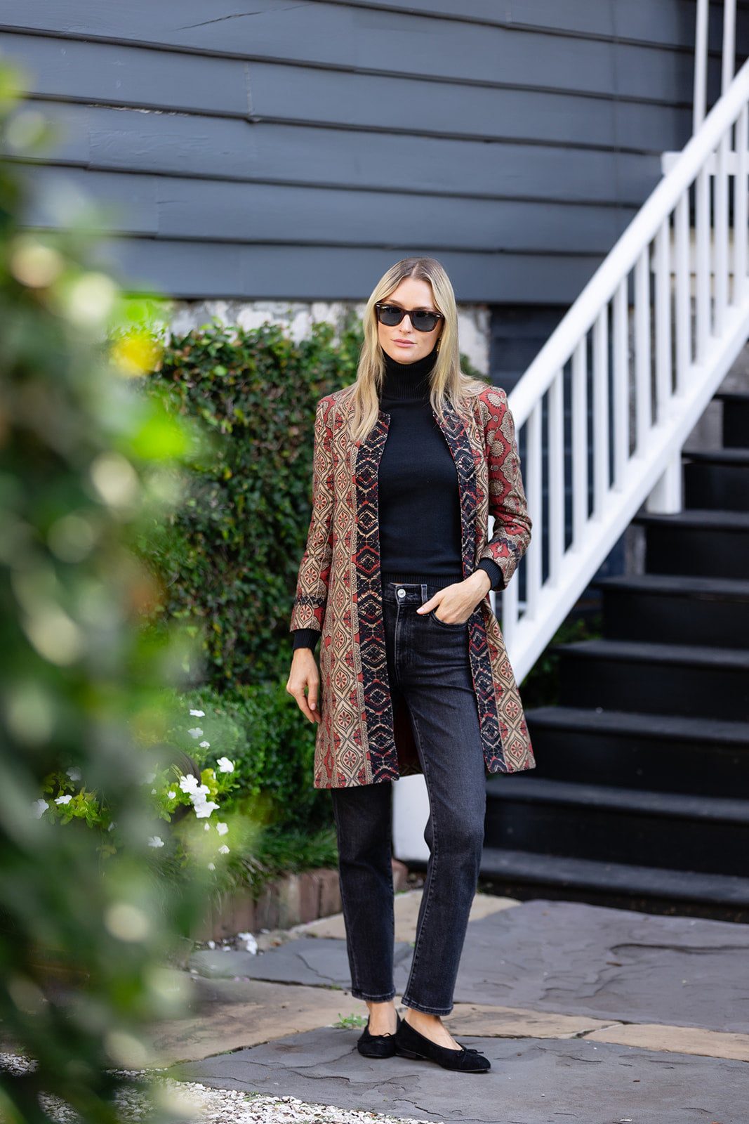 The Ali is a chic fitted open-front, mid-length jacket that we love over a knit with jeans or a Jackie Pant this fall. The Ali Jacket is made of 100% cotton canvas with geometric-patterned embroidered stitching detail along the front opening, collar, and wrist hems. Hits slightly above the hip.