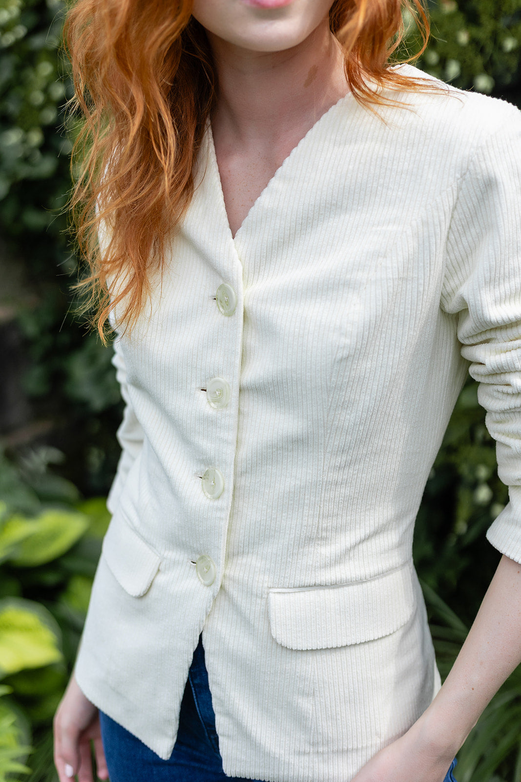 Meet the Colette Jacket, our new tailored women's jacket in wide wale corduroy. With a flattering and feminine tapered waist and v-neck, the Colette is our contemporary take on a blazer-top. Pair her with jeans and ballet flats for a daytime polished cool.