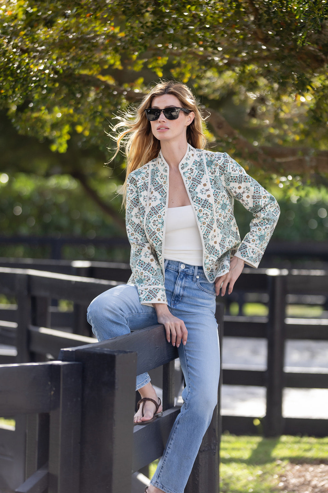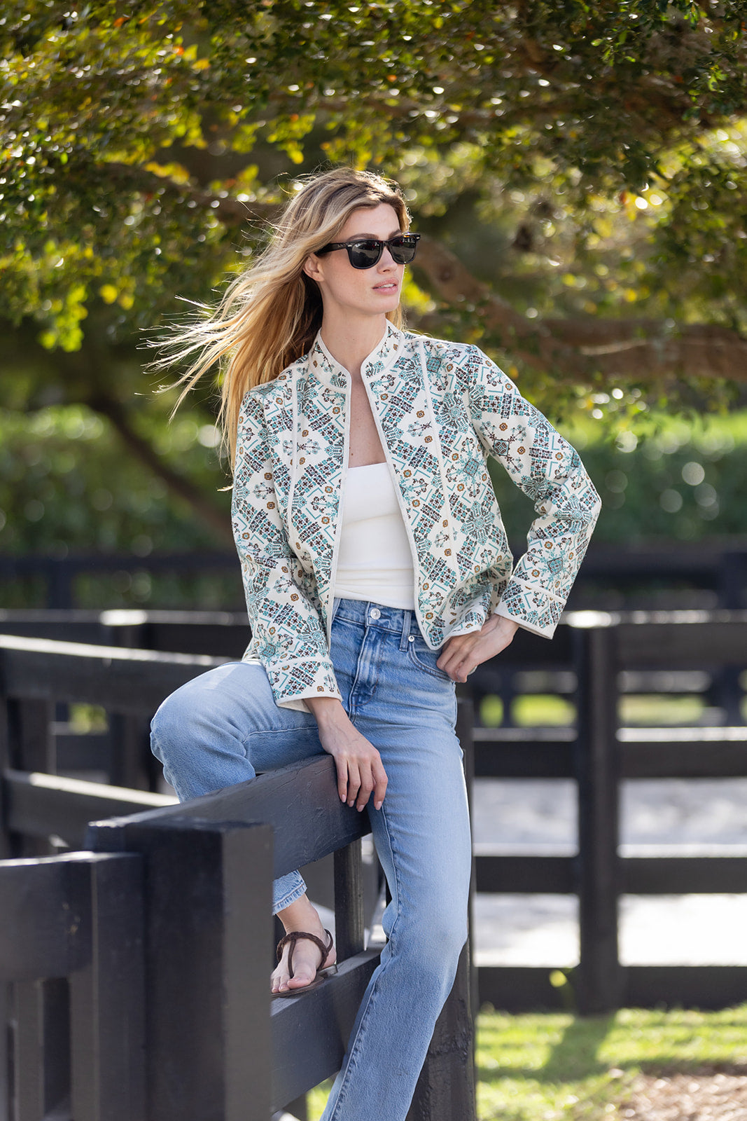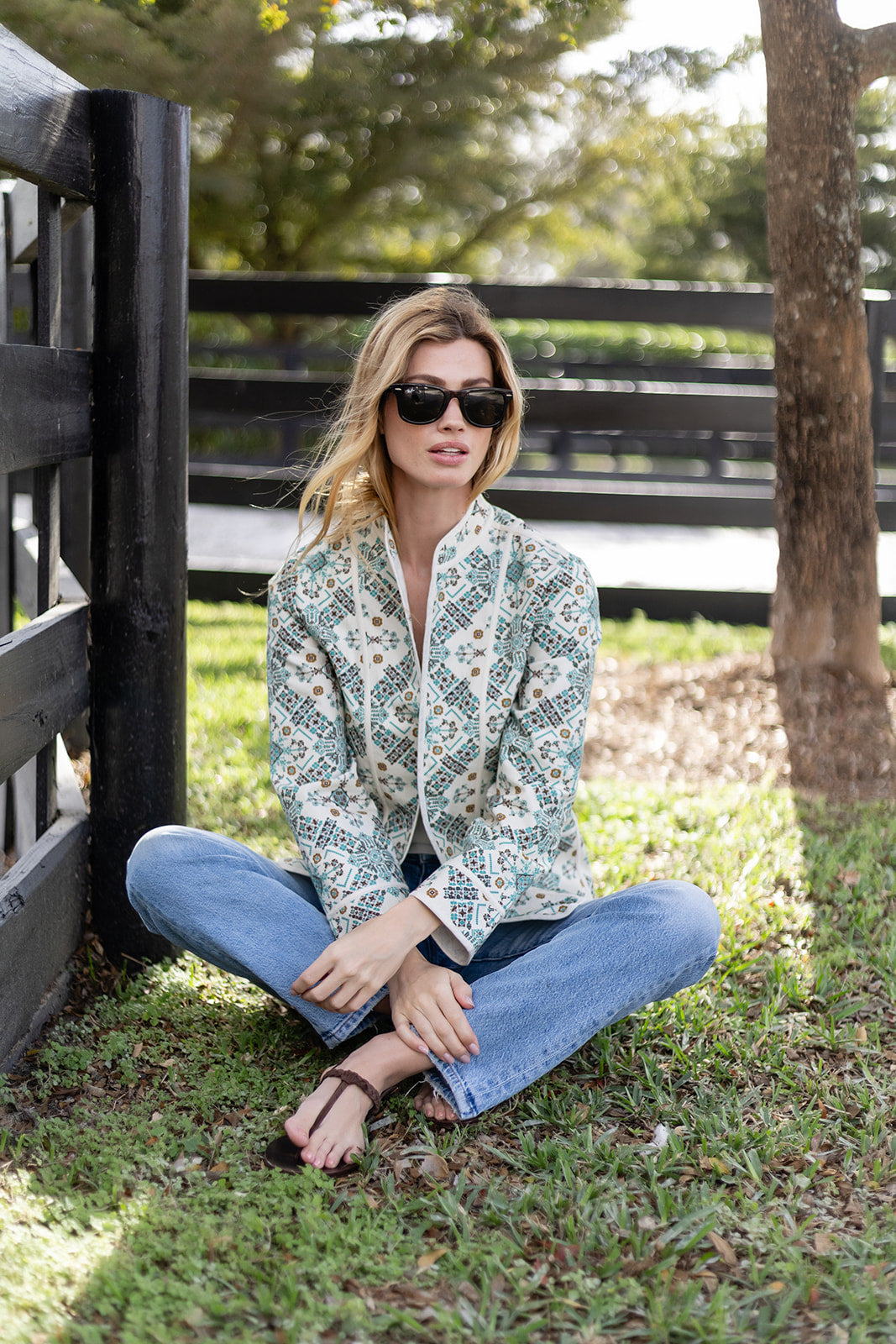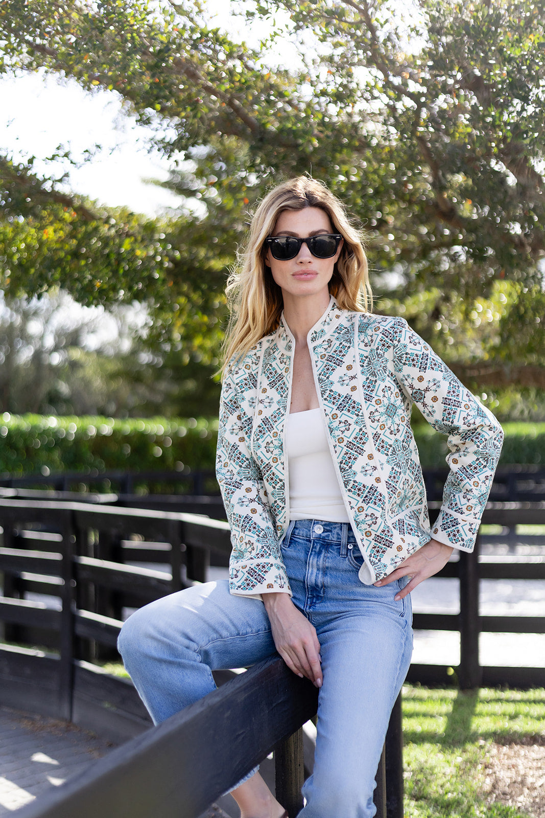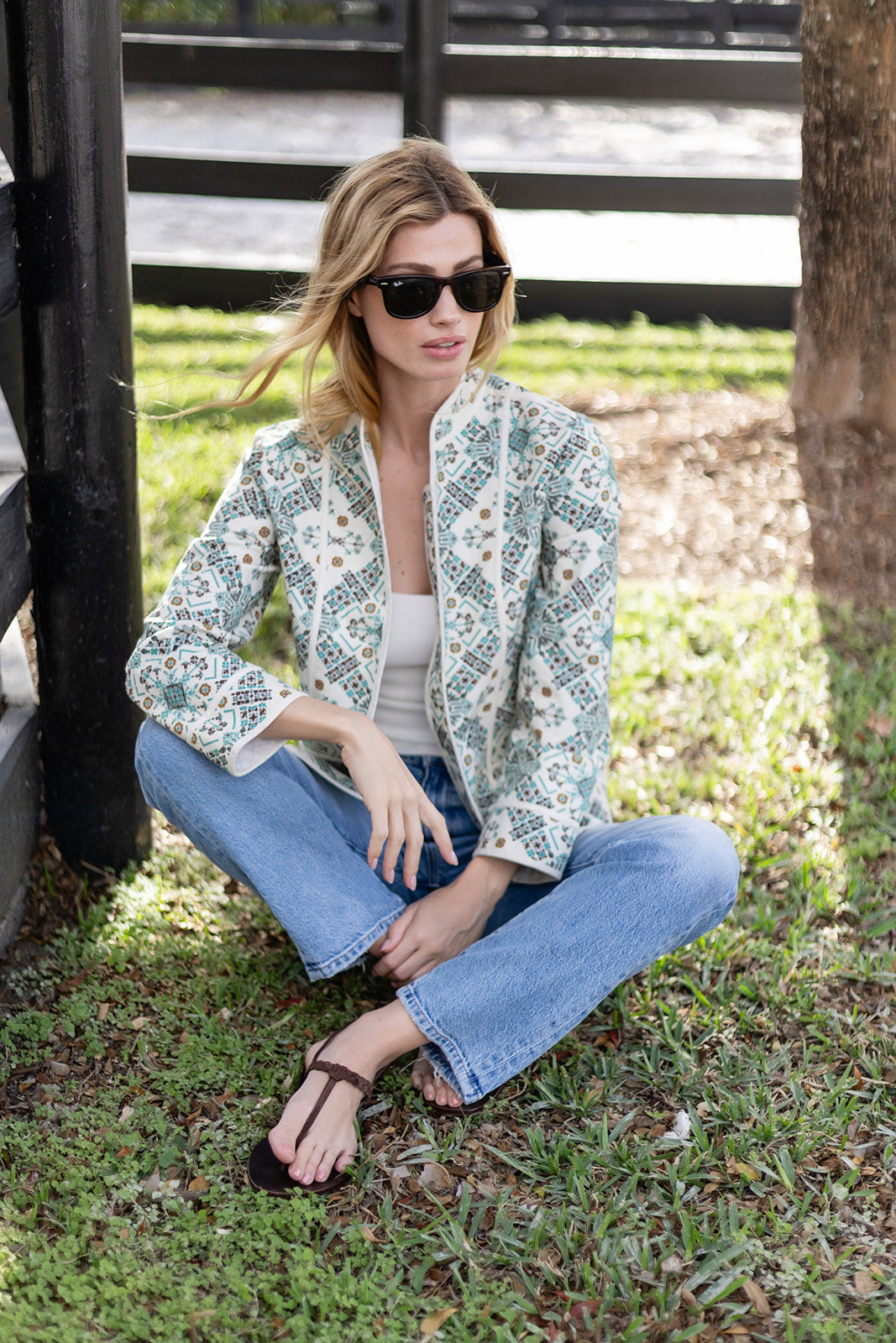 Meet the Emilia Jacket, our new mandarin collar canvas jacket. The perfect blend of a tailored yet relaxed aesthetic, she's our new go-to transitional jacket for spring days. Style with denim and a tank (we're partial to the Ellie Tank) for an effortless, everyday look, or pair with Bell Pants for something more refined.