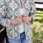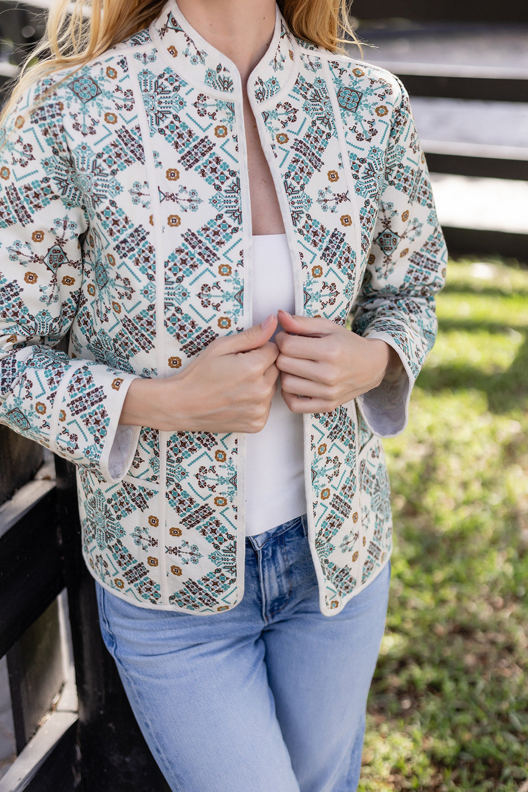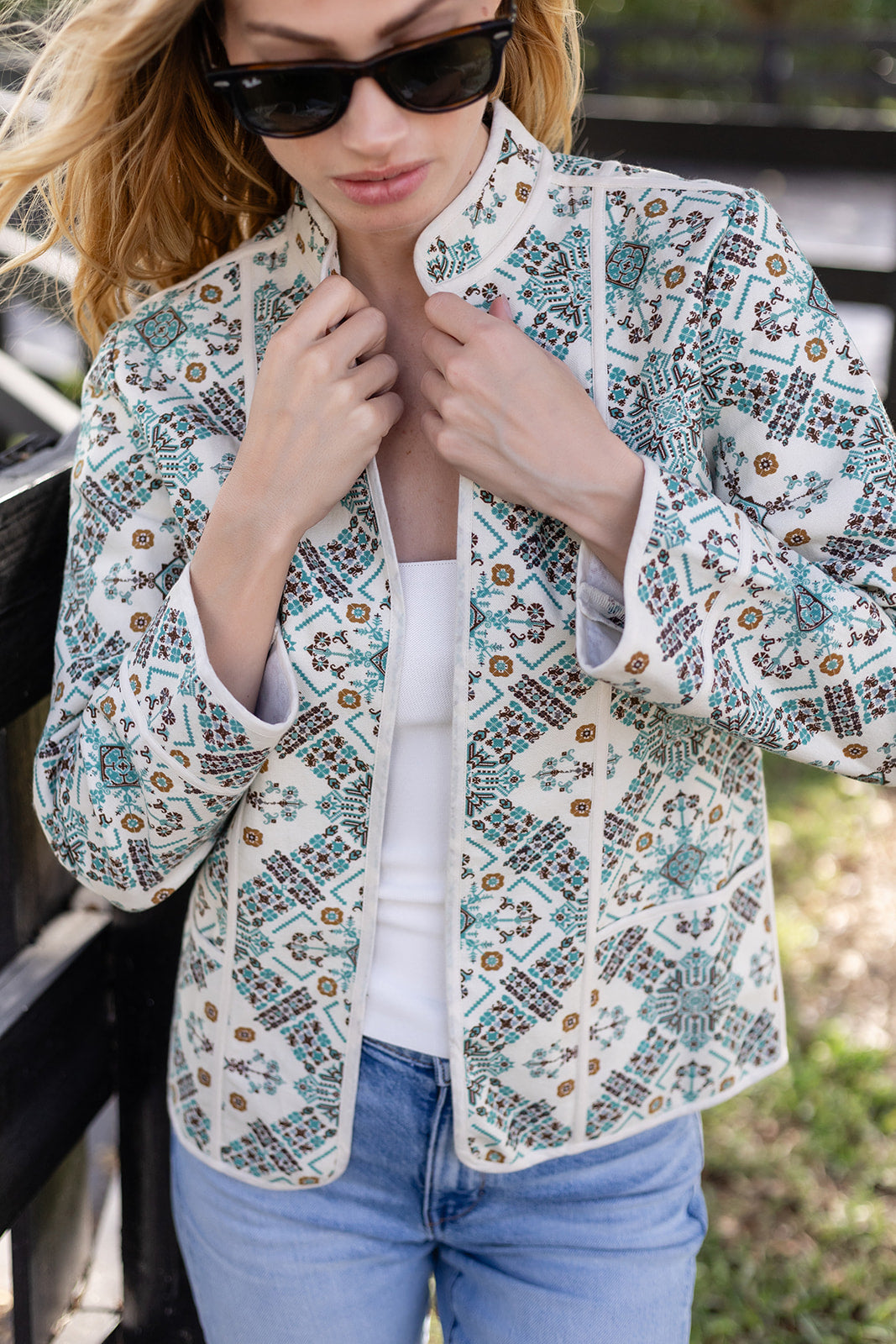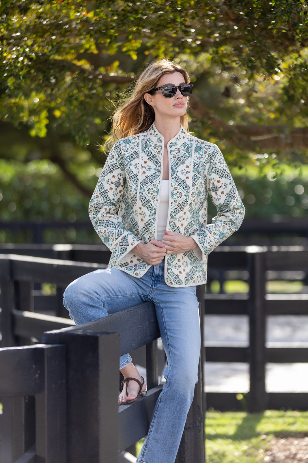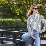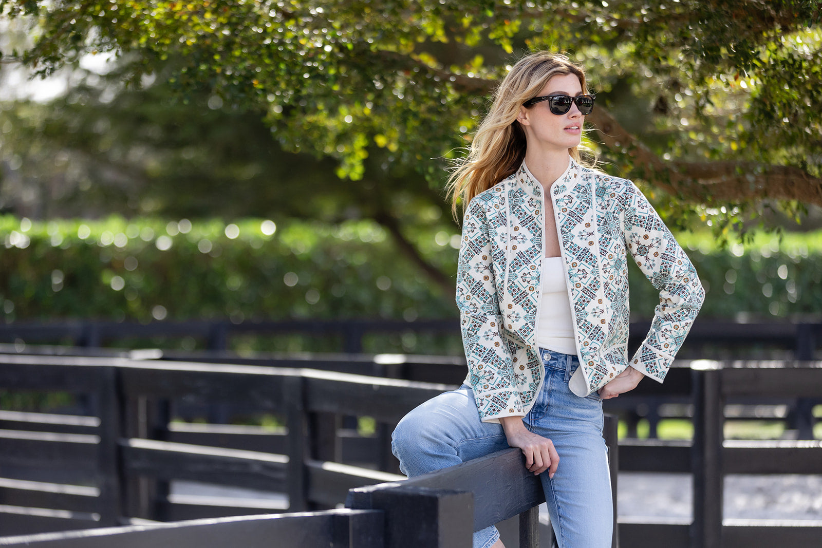 Meet the Emilia Jacket, our new mandarin collar canvas jacket. The perfect blend of a tailored yet relaxed aesthetic, she's our new go-to transitional jacket for spring days. Style with denim and a tank (we're partial to the Ellie Tank) for an effortless, everyday look, or pair with Bell Pants for something more refined.
