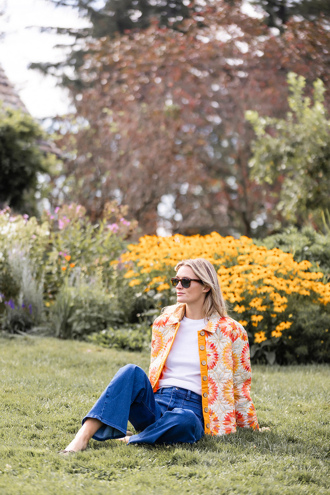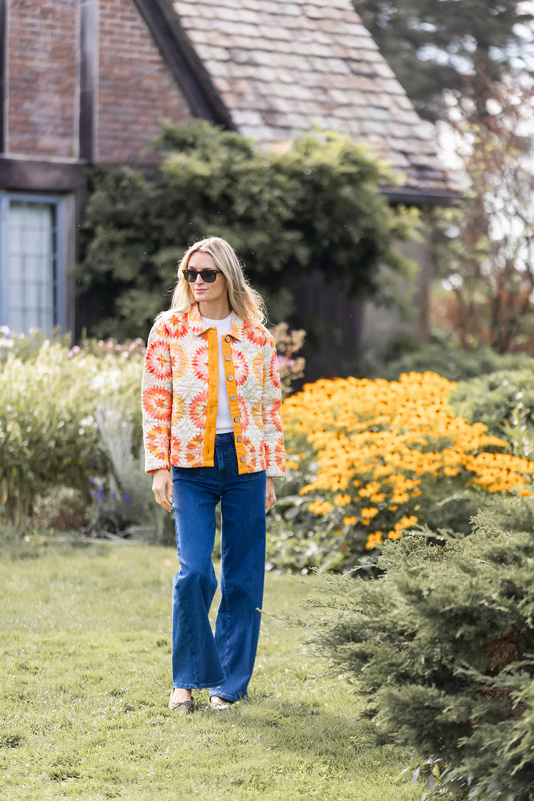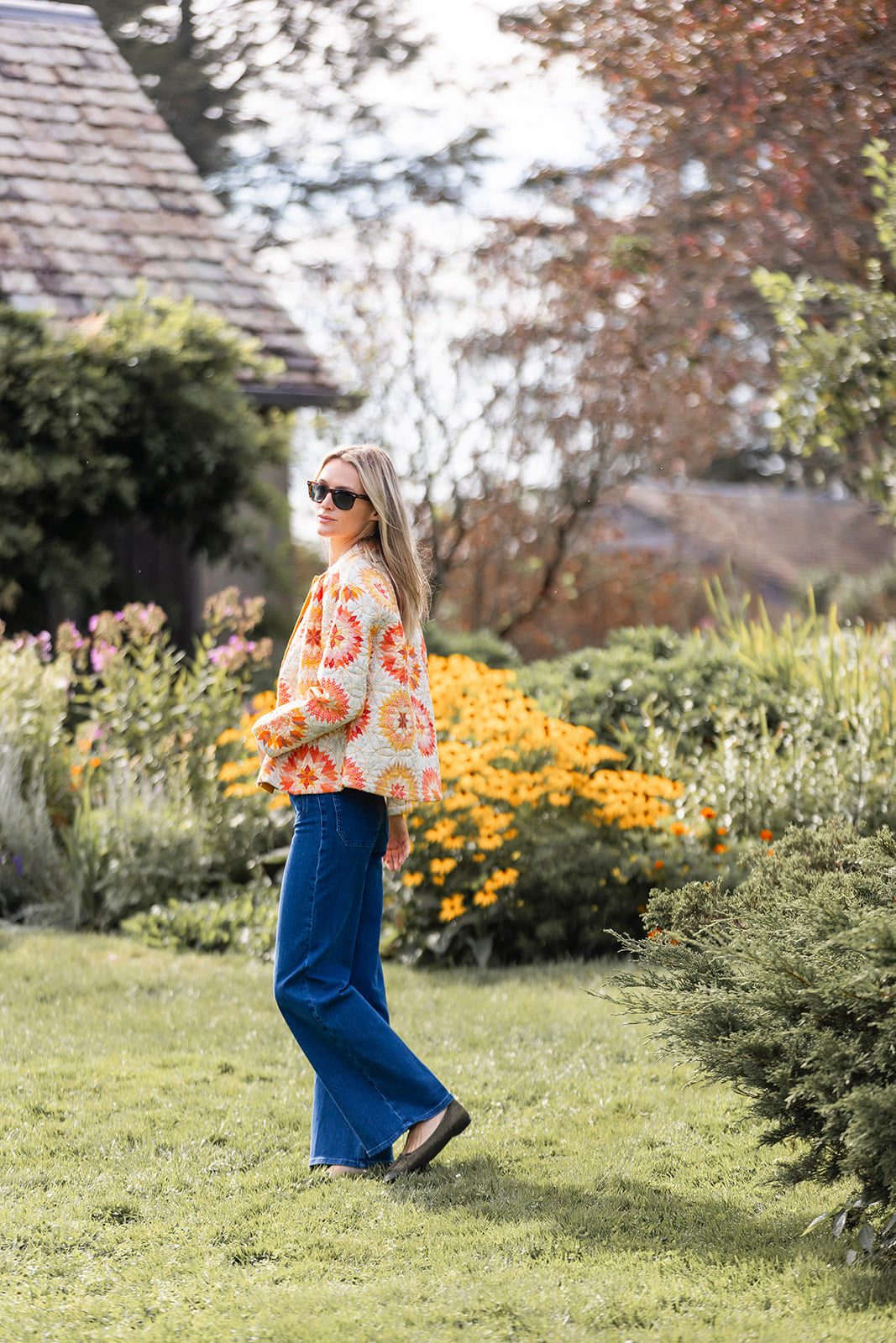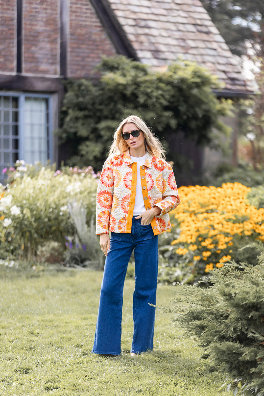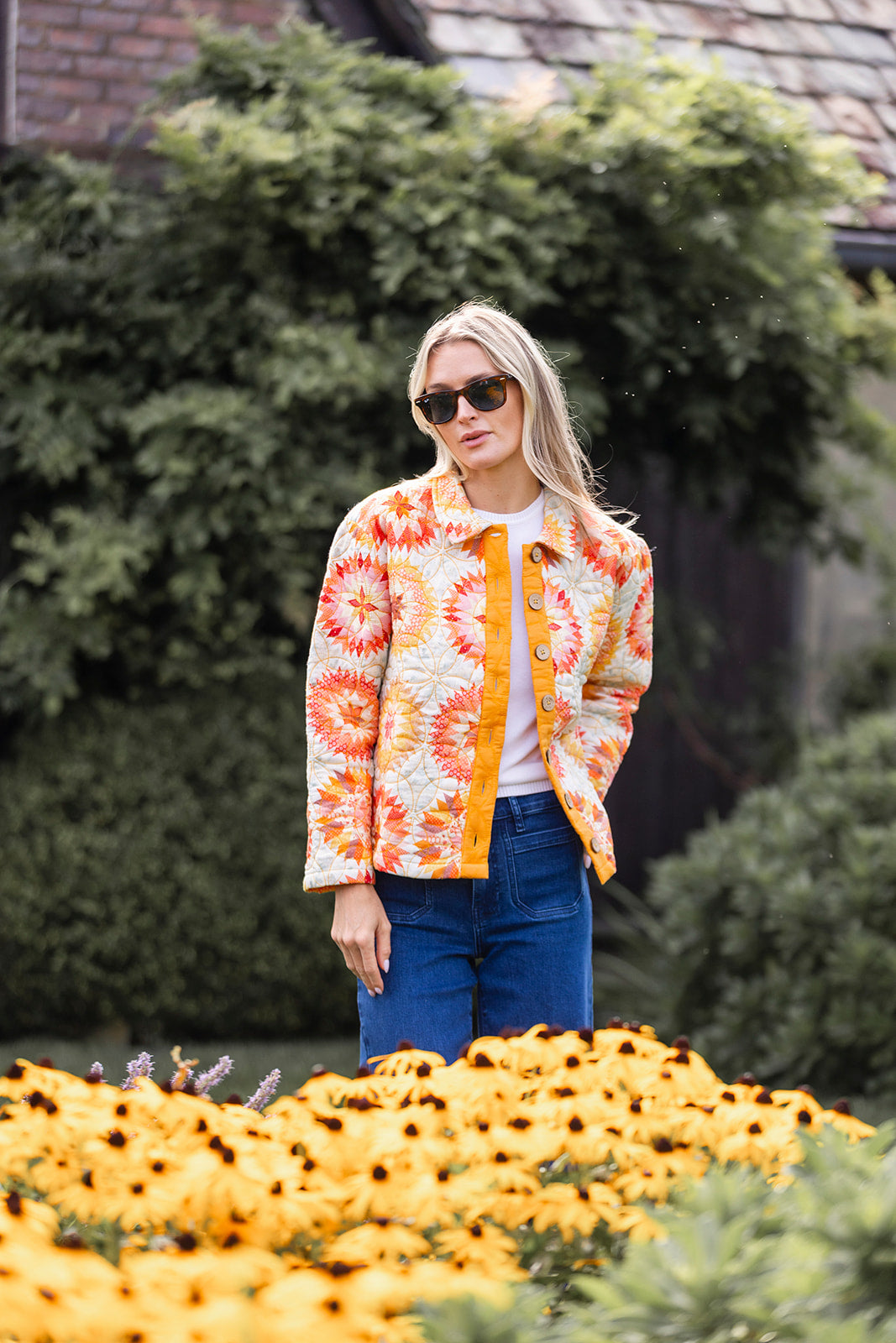 The Mackenzie Jacket is our newest quilted jacket perfect for those fall days when the temperature can't make up its mind. We love to throw it over a Tippi (+ a sweater when it cools down more) & jeans to add some polish to our go-to daytime look. Features a collar, floral-design stitching, and wooden button. Hits at the hip.