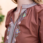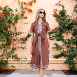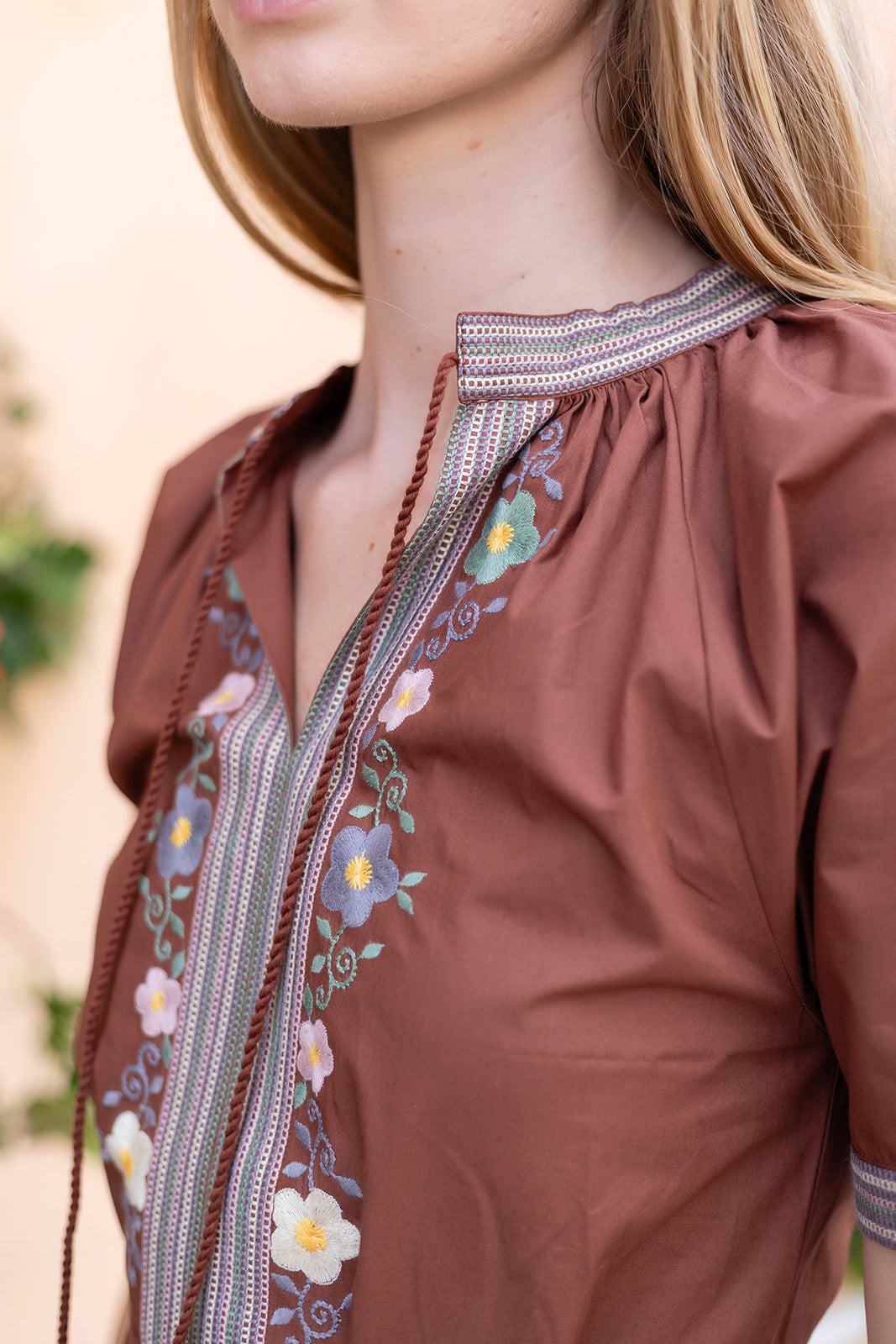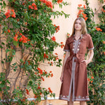 Meet the Daphne Coatue, a new iteration of our bestselling Coatue Caftan. Featuring delicate embroidered floral detailing, she’s designed to transition seamlessly from daytime outings to relaxed evenings out. The Daphne Coatue features a flattering, softly tailored silhouette with short sleeves, a coordinating tie belt to cinch the waist, and a structured yet fluid drape. Dress hits mid-calf.