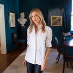 Our new contemporary take on the traditional tuxedo shirt, designed with chouette fall outfits and holiday festivities in mind. Featuring the sharp collar, pleated bib neckline, deep adjustable cuffs of a classic tuxedo shirt. Made of the same sturdy cotton poplin as the Carolyn Shirt.