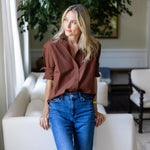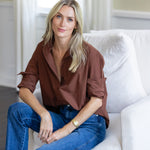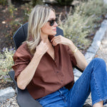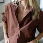 Meet the Carolyn, the only button-down shirt you need in your closet (tbh, you might need multiple). The perfect outfit canvas, she can be worn just as easily for a dressed-up evening look (think CBK), as she can with jeans (or a pareo) for a polished everyday look. The Carolyn has a flattering slightly boxy shape designed for a loose fit.