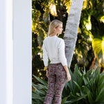 The bestselling printed Bell Pant, our effortlessly chic basic pant, now in printed Twill (she has the same hint of stretch but a little more give than the original canvas fabrication). The cropped pants feature a supremely flattering subtle kick-flare. Slightly tidier than denim, the Bell Pants do not have pockets or belt loops to make them a sleeker silhouette and your ultimate summer daytime outfit canvas.