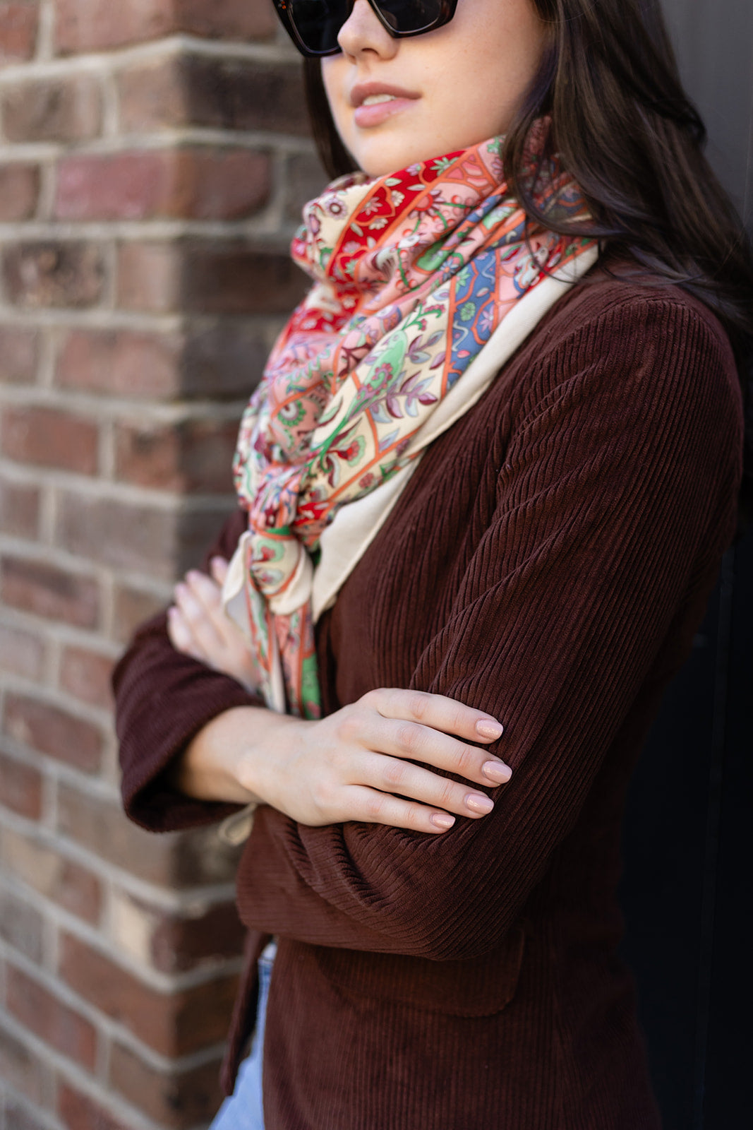 A textured fabric with a parallel “wale” pattern. Corduroy is all we want to live in during the cooler months. Find us in our corduroy paired with a cashmere sweater watching Love Story, You’ve Got Mail, Practical Magic (you get the idea) this fall.