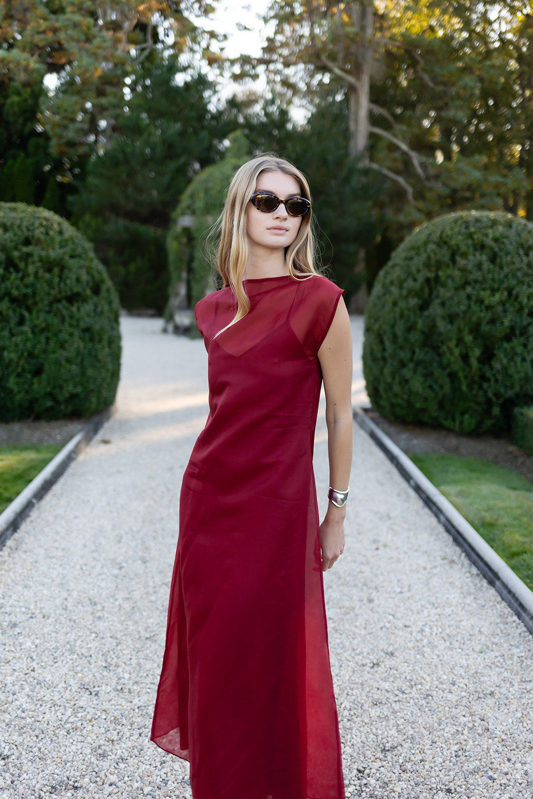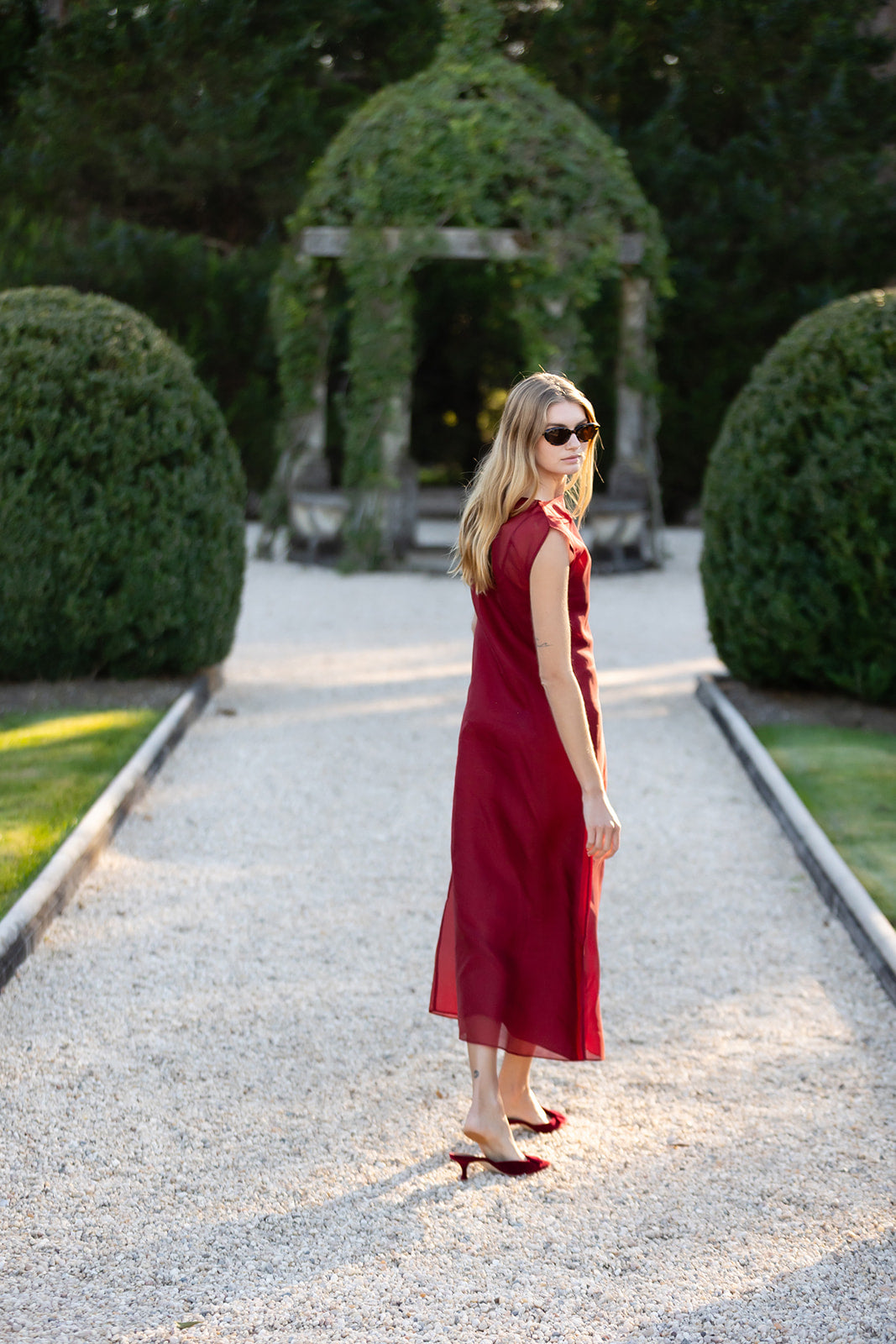 Meet the Grace Dress, our new cap-sleeved organza slip dress (think: screen goddess in manner of Grace Kelly). With a tea length and featuring a sheer organza overlay and a cotton slip lining, she has o-I-just-threw-this-on-and-look-incredible energy. Keyhole and button closure at back of neck.