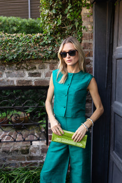 Party pants! A wide, leg-elongating pant cut that cinches the waist - these are the most flattering pants of all time (we swear). We love them paired with a Tippi, Carolyn, or Blair Top in a coordinating (or contrasting color for a on-trend color-blocking moment).