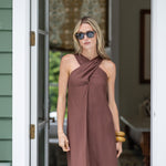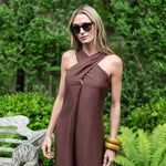 Meet the Camille Dress, a chic and ultra-flattering event dress for the season's soirees, now in linen for Summer. Perfectly minimalist in design, she's both elegant and a little bit sexy. Made of linen viscose, the Camille features a crossed halter-neck with a full back to make it bra friendly, paneled front and a front slit. Zip closure in back.