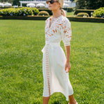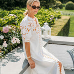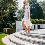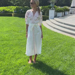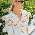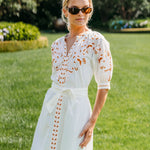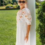 The new Cordelia Coatue Dress is equal parts cute and effortless, featuring rich embroidered floral detail and dot piping, she's perfect for an elevated day out or dressed up for a casual evening. A flowy, slightly A-line silhouette with a coordinating tie belt. Sleeves do not feature an elastic banded arm. Unlined but not sheer. 100% Cotton Poplin.
